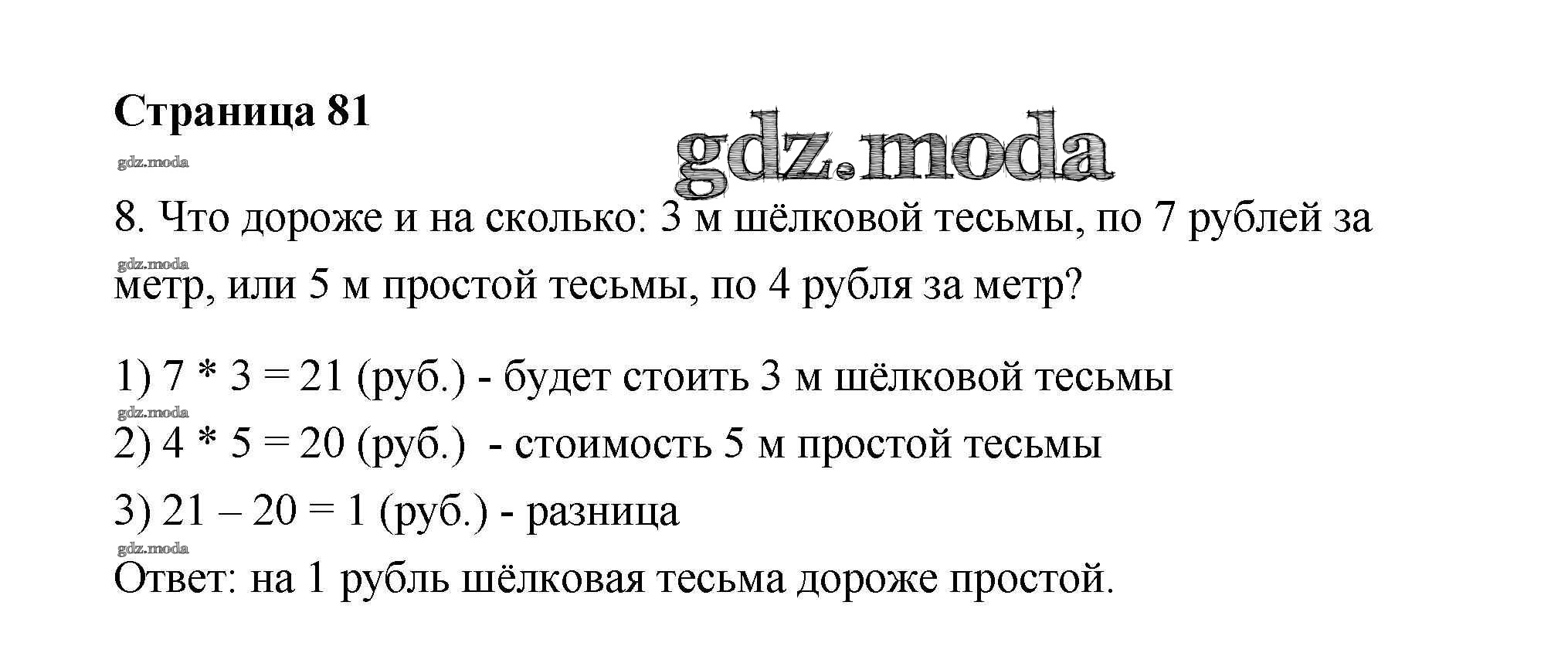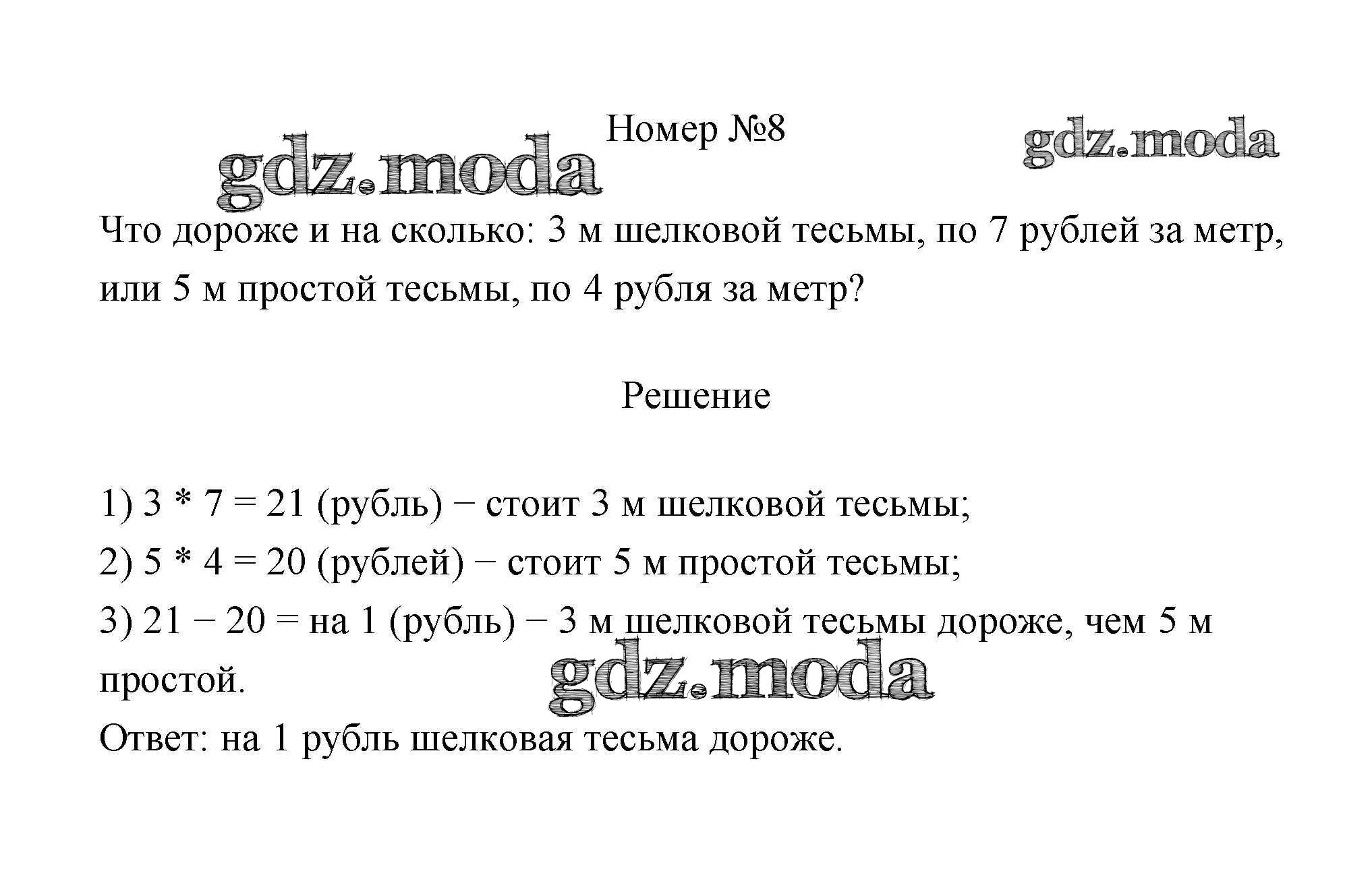 ГДЗ решение к заданию № 8 Математика 3 класс Дорофеев Г.В. Просвещение 2015 Часть 1, Часть 2 ФГОС бесплатно на гдз.мода!