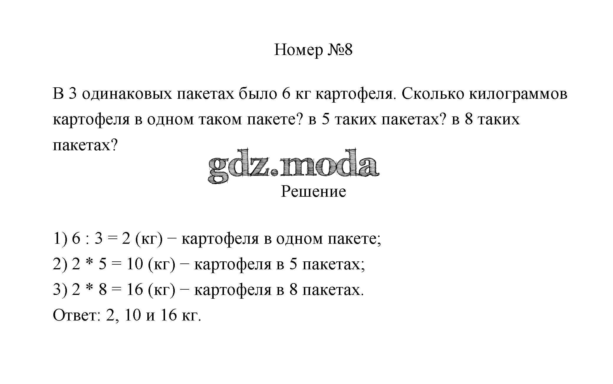ОТВЕТ на задание № 8 Учебник по Математике 3 класс Дорофеев