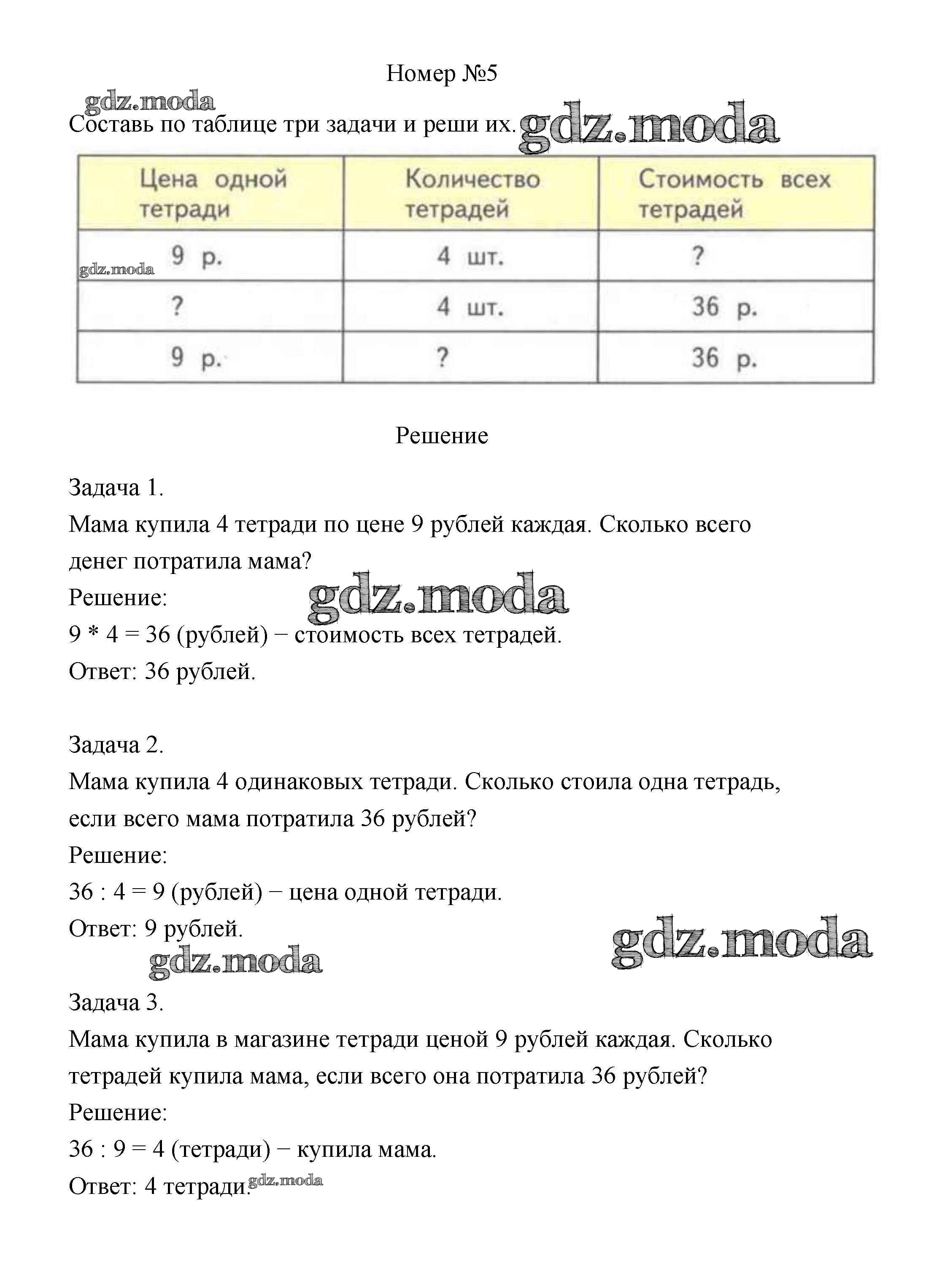 ГДЗ решение к заданию № 5 Математика 3 класс Дорофеев Г.В. Просвещение 2015 Часть 1, Часть 2 ФГОС бесплатно на гдз.мода!