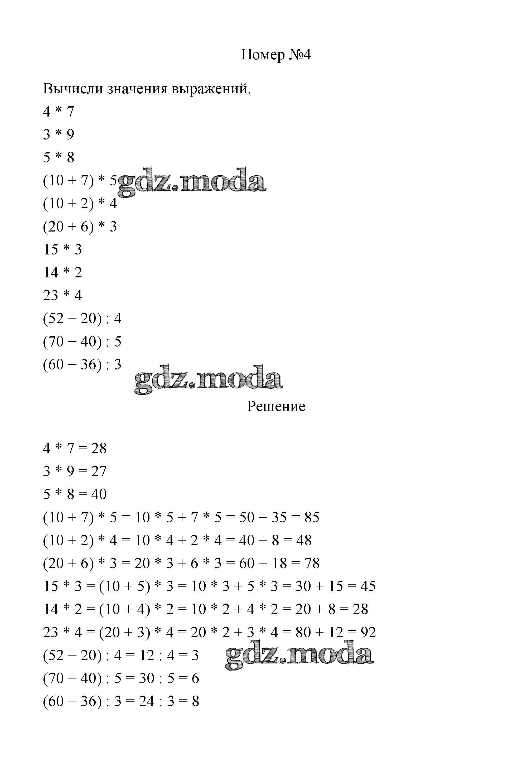 ГДЗ решение к заданию № 4 Математика 3 класс Дорофеев Г.В. Просвещение 2015 Часть 1, Часть 2 ФГОС бесплатно на гдз.мода!