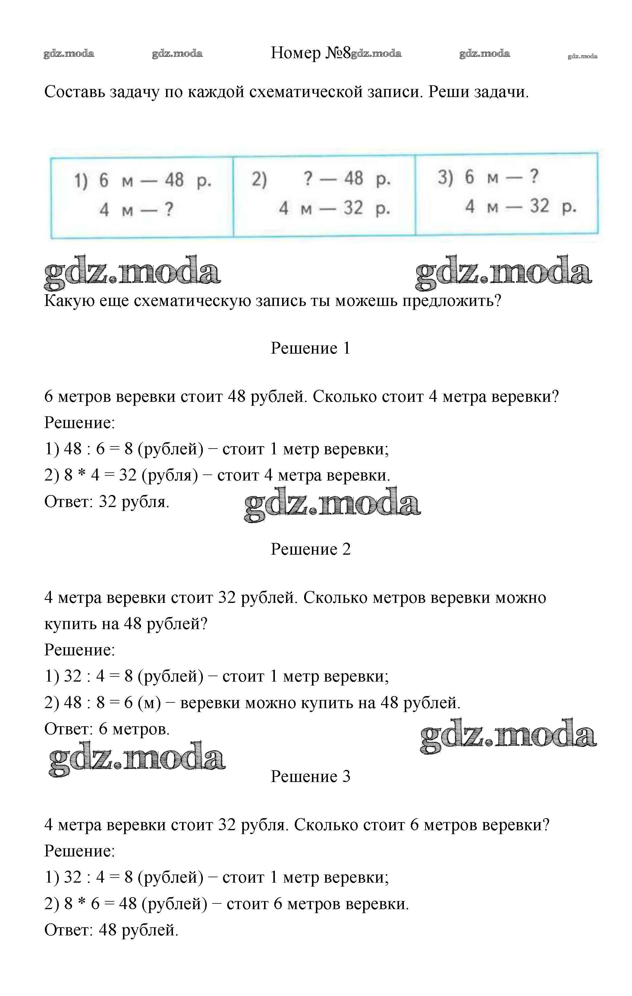 ГДЗ решение к заданию № 8 Математика 3 класс Дорофеев Г.В. Просвещение 2015 Часть 1, Часть 2 ФГОС бесплатно на гдз.мода!
