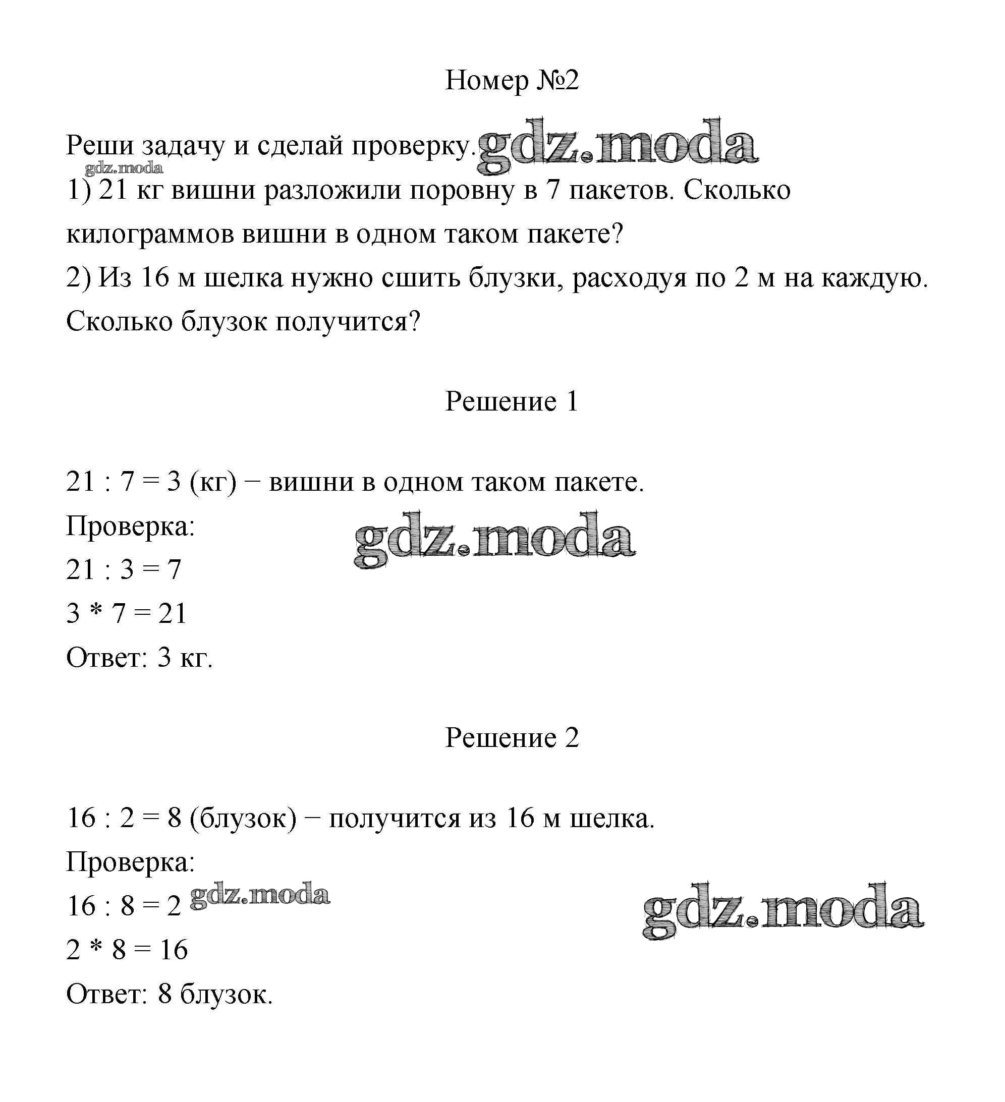 ГДЗ решение к заданию № 2 Математика 3 класс Дорофеев Г.В. Просвещение 2015 Часть 1, Часть 2 ФГОС бесплатно на гдз.мода!
