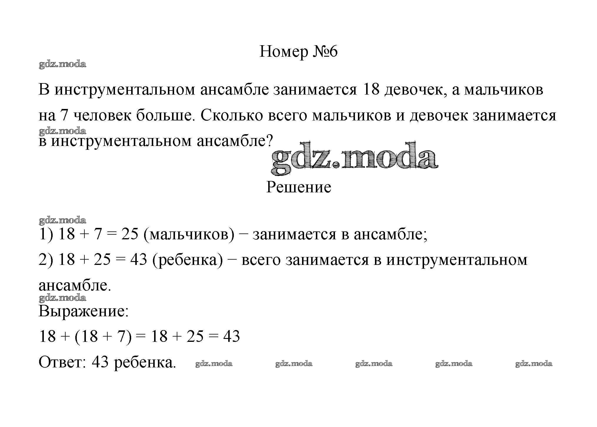 ГДЗ решение к заданию № 6 Математика 3 класс Дорофеев Г.В. Просвещение 2015 Часть 1, Часть 2 ФГОС бесплатно на гдз.мода!