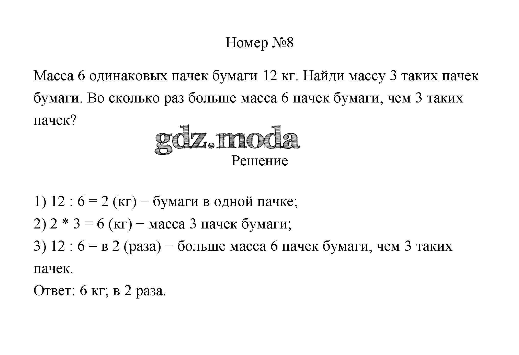 ГДЗ решение к заданию № 8 Математика 3 класс Дорофеев Г.В. Просвещение 2015 Часть 1, Часть 2 ФГОС бесплатно на гдз.мода!