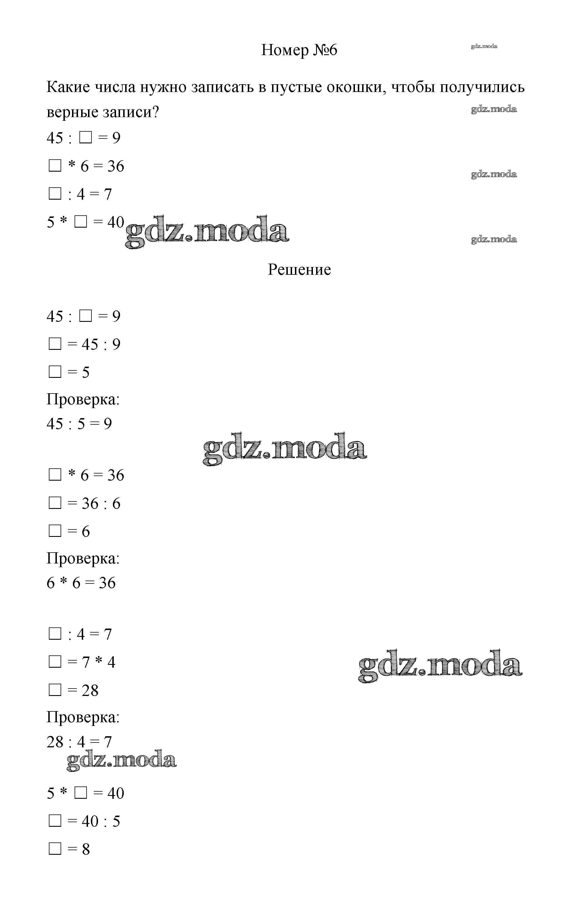 ГДЗ решение к заданию № 6 Математика 3 класс Дорофеев Г.В. Просвещение 2015 Часть 1, Часть 2 ФГОС бесплатно на гдз.мода!