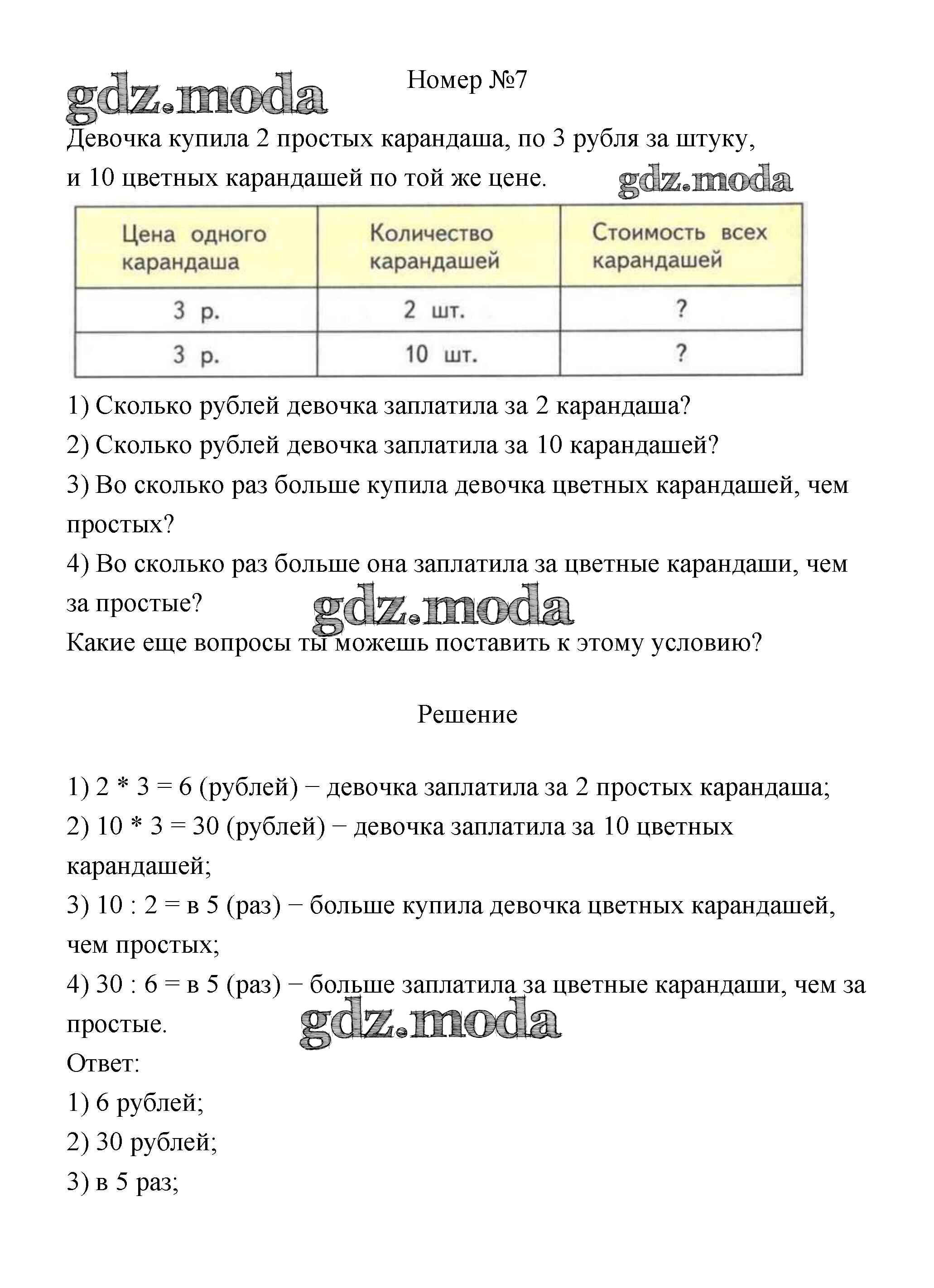 ГДЗ решение к заданию № 7 Математика 3 класс Дорофеев Г.В. Просвещение 2015 Часть 1, Часть 2 ФГОС бесплатно на гдз.мода!
