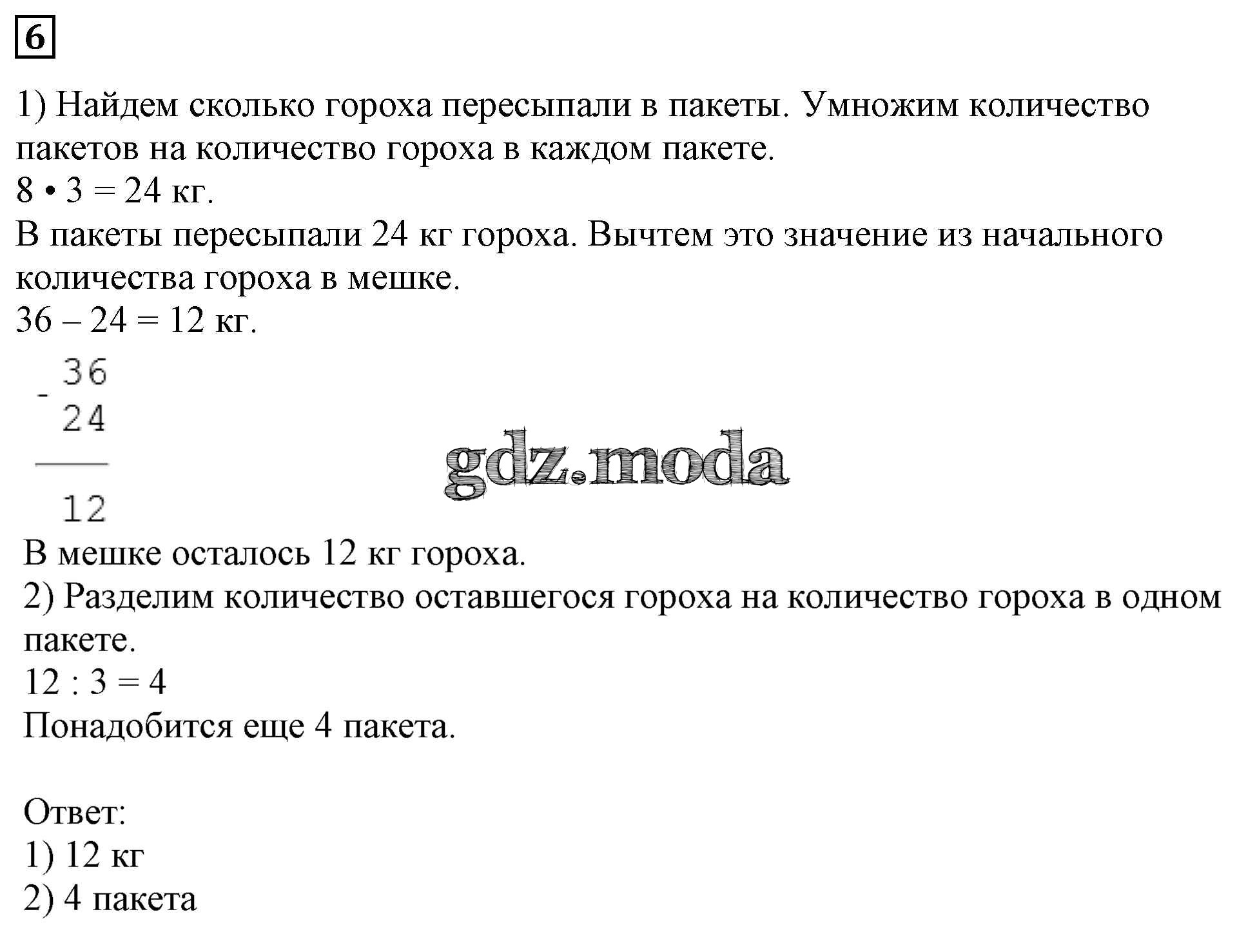 ГДЗ решение к заданию № 6 Математика 3 класс Дорофеев Г.В. Просвещение 2015 Часть 1, Часть 2 ФГОС бесплатно на гдз.мода!