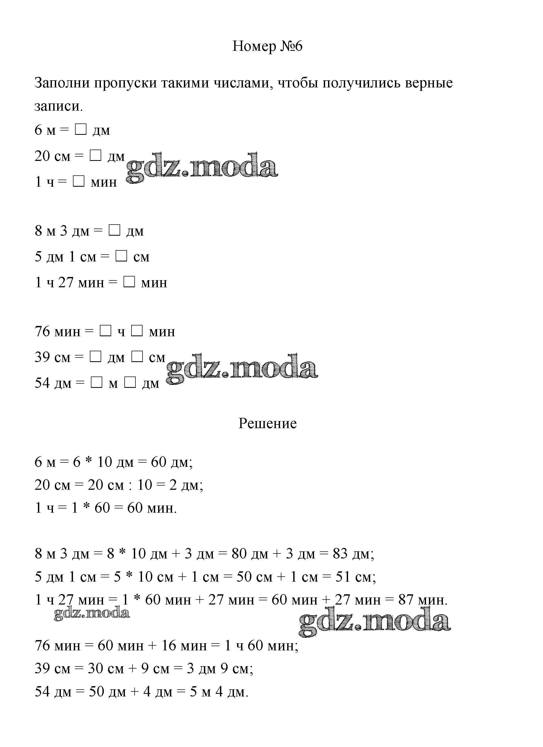 ГДЗ решение к заданию № 6 Математика 3 класс Дорофеев Г.В. Просвещение 2015 Часть 1, Часть 2 ФГОС бесплатно на гдз.мода!