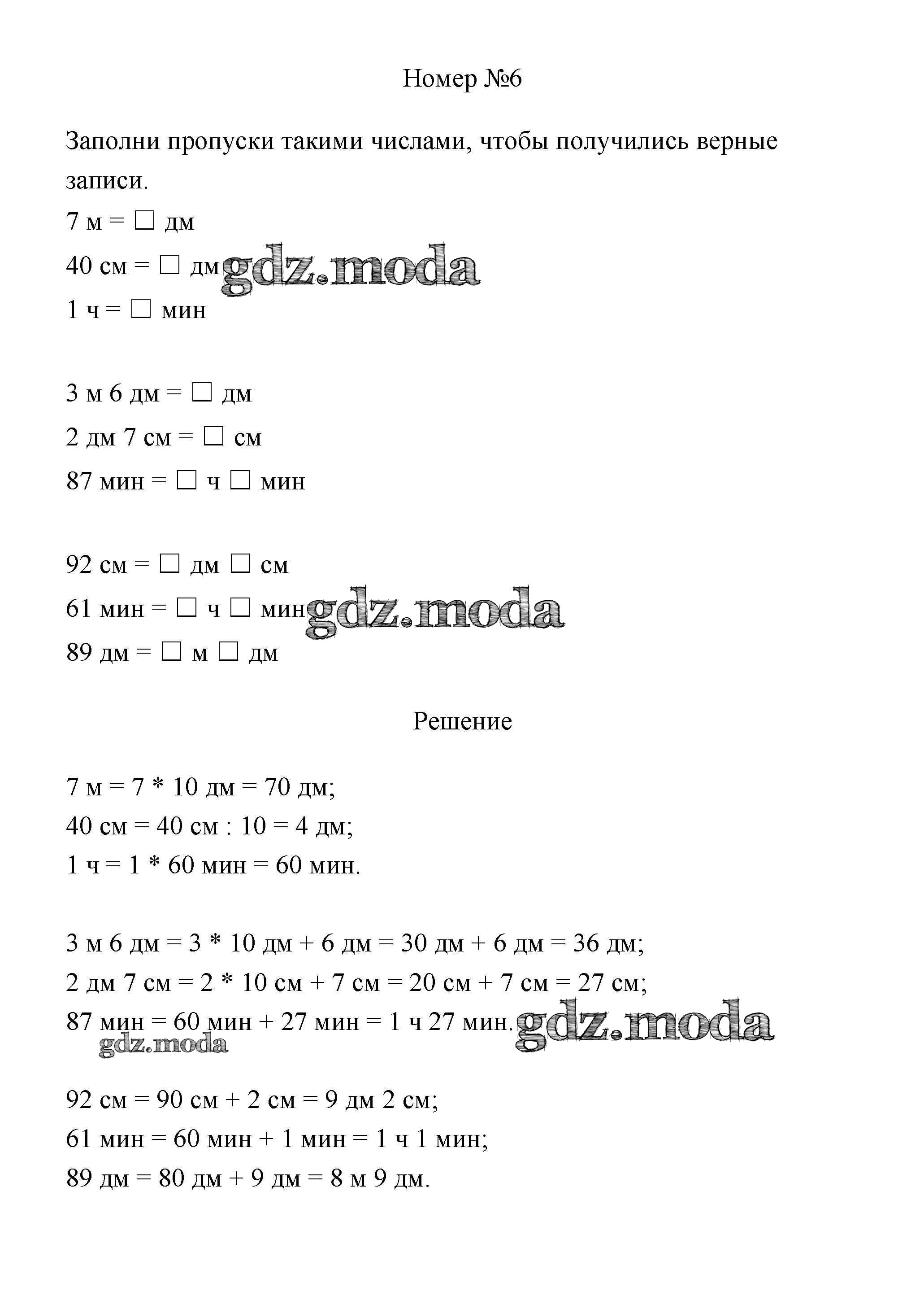 ГДЗ решение к заданию № 6 Математика 3 класс Дорофеев Г.В. Просвещение 2015 Часть 1, Часть 2 ФГОС бесплатно на гдз.мода!