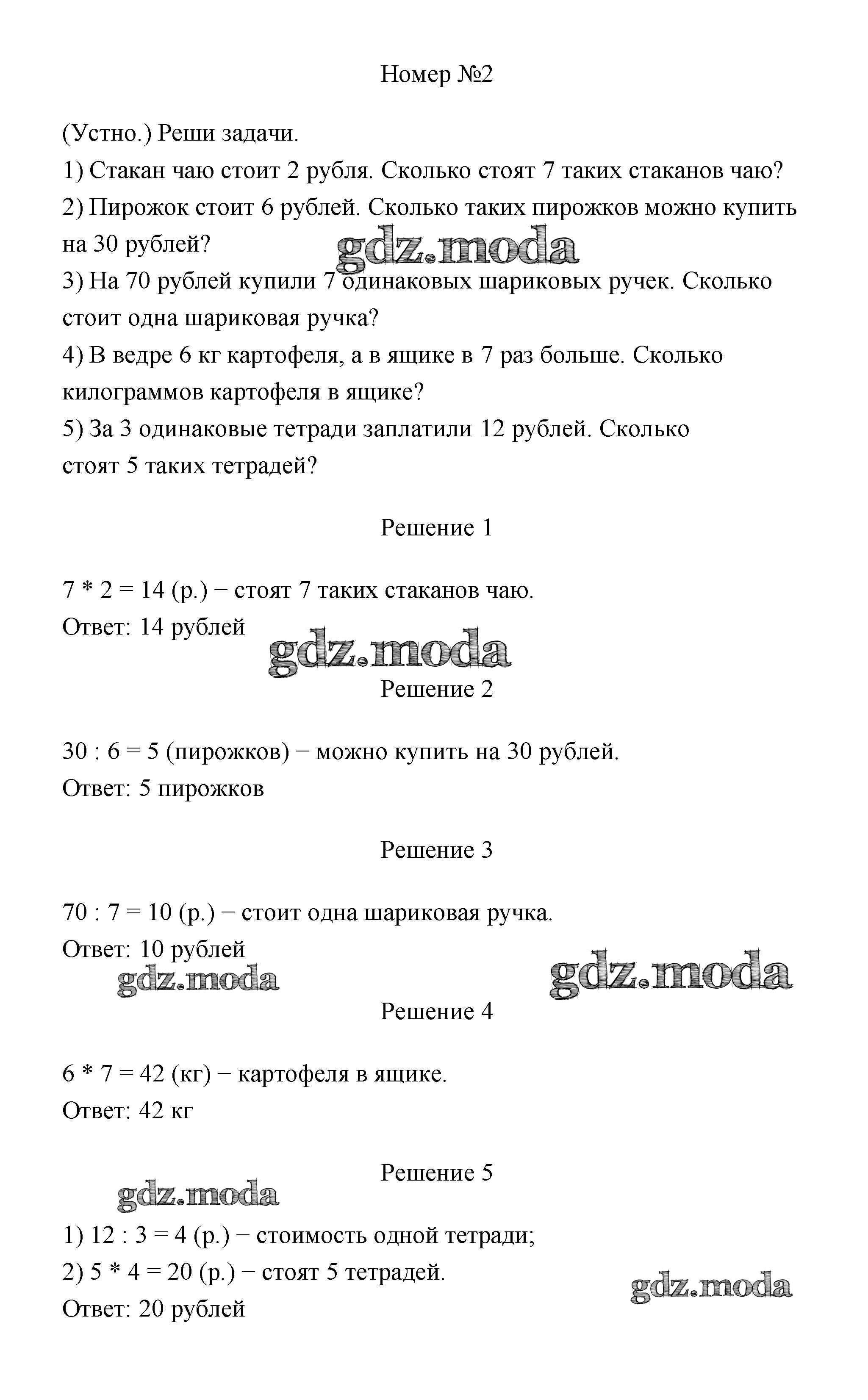 ГДЗ решение к заданию № 2 Математика 3 класс Дорофеев Г.В. Просвещение 2015 Часть 1, Часть 2 ФГОС бесплатно на гдз.мода!