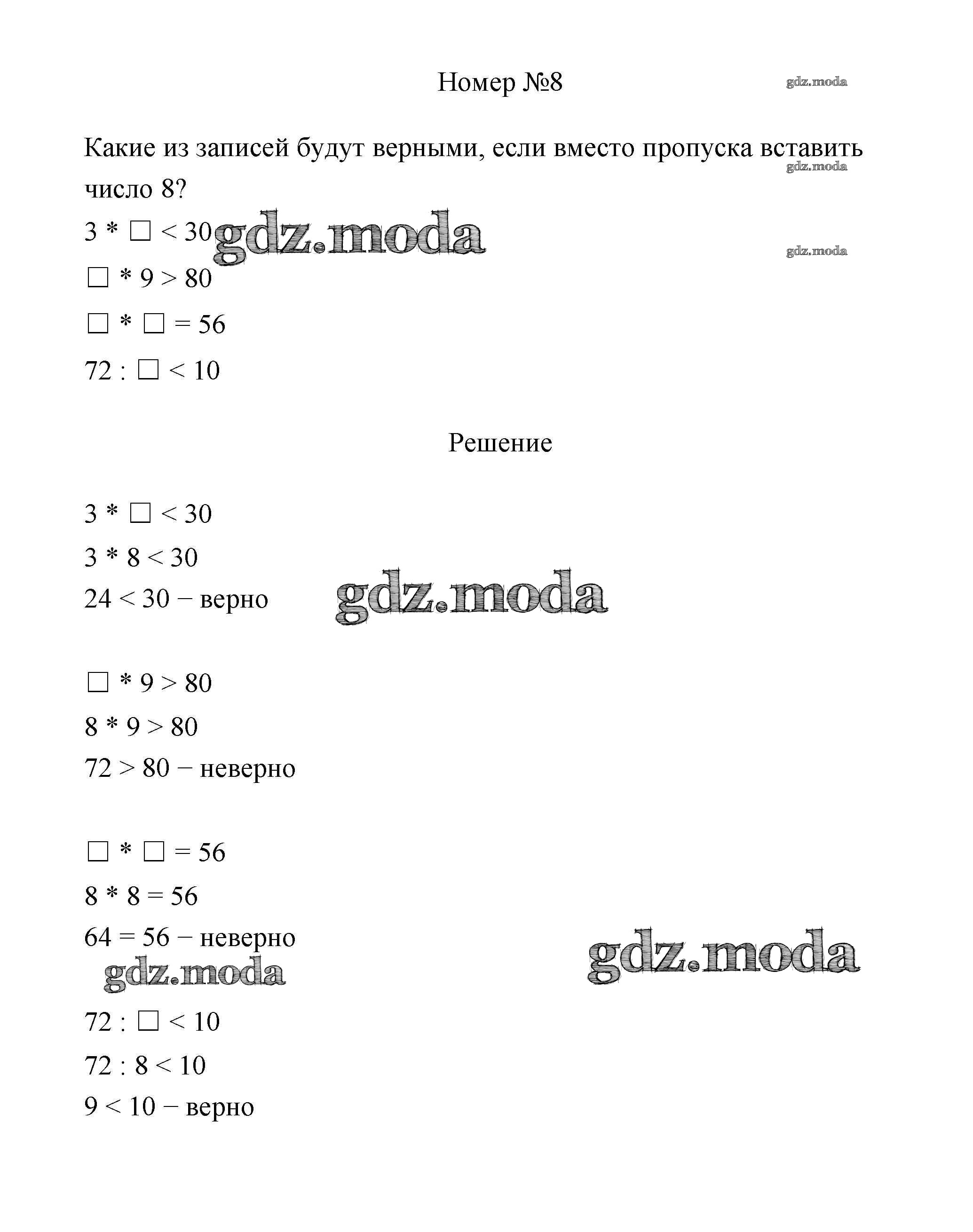 ГДЗ решение к заданию № 8 Математика 3 класс Дорофеев Г.В. Просвещение 2015 Часть 1, Часть 2 ФГОС бесплатно на гдз.мода!