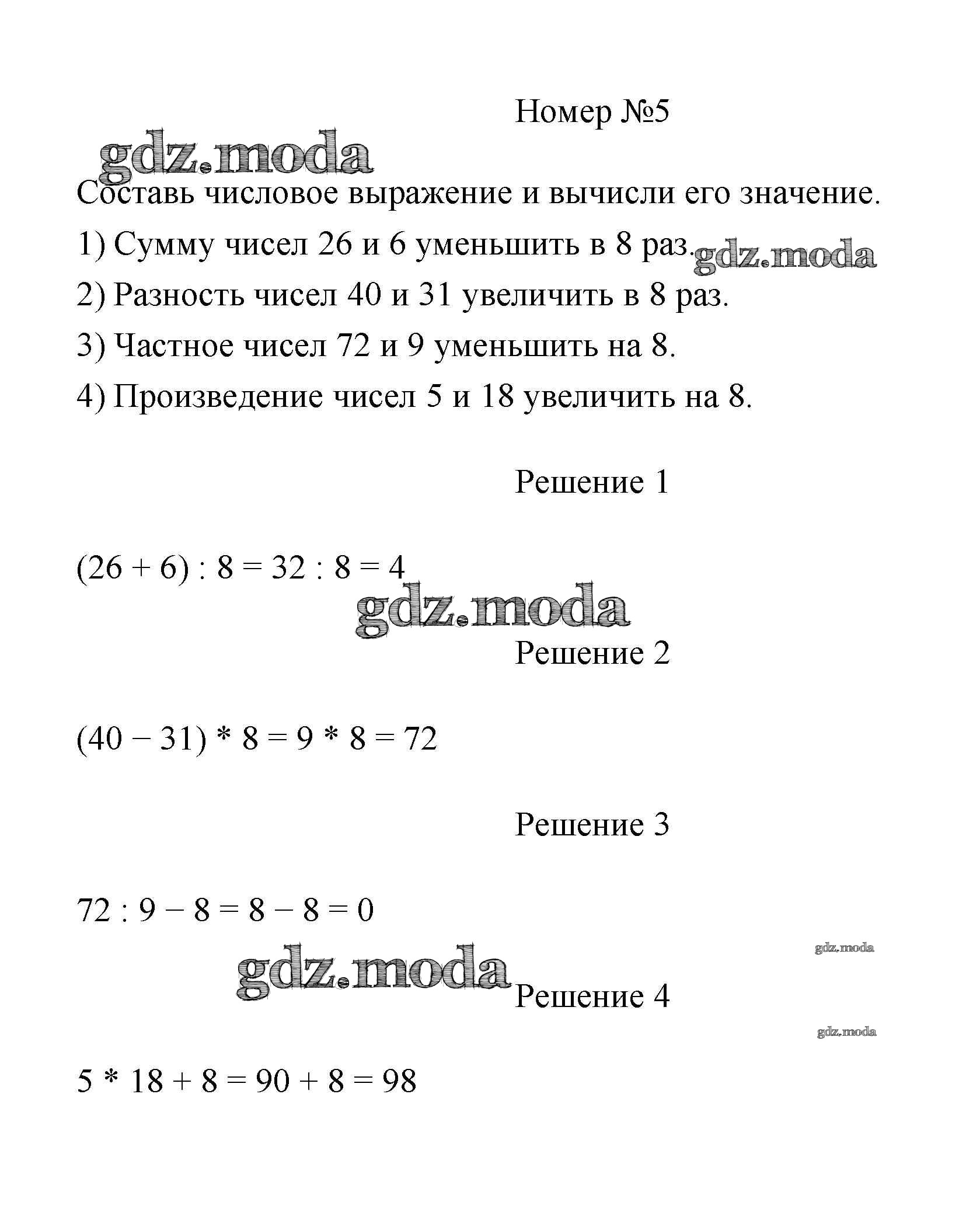 ГДЗ решение к заданию № 5 Математика 3 класс Дорофеев Г.В. Просвещение 2015 Часть 1, Часть 2 ФГОС бесплатно на гдз.мода!