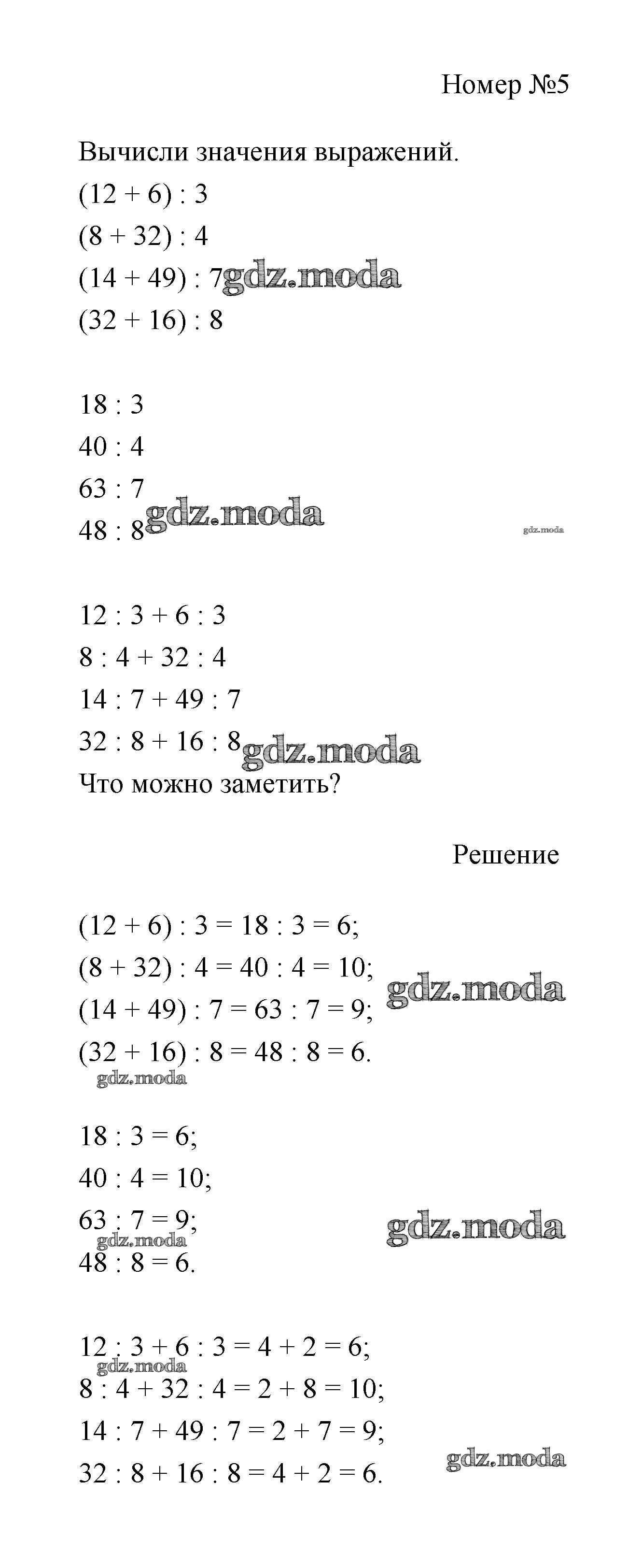 ГДЗ решение к заданию № 5 Математика 3 класс Дорофеев Г.В. Просвещение 2015 Часть 1, Часть 2 ФГОС бесплатно на гдз.мода!