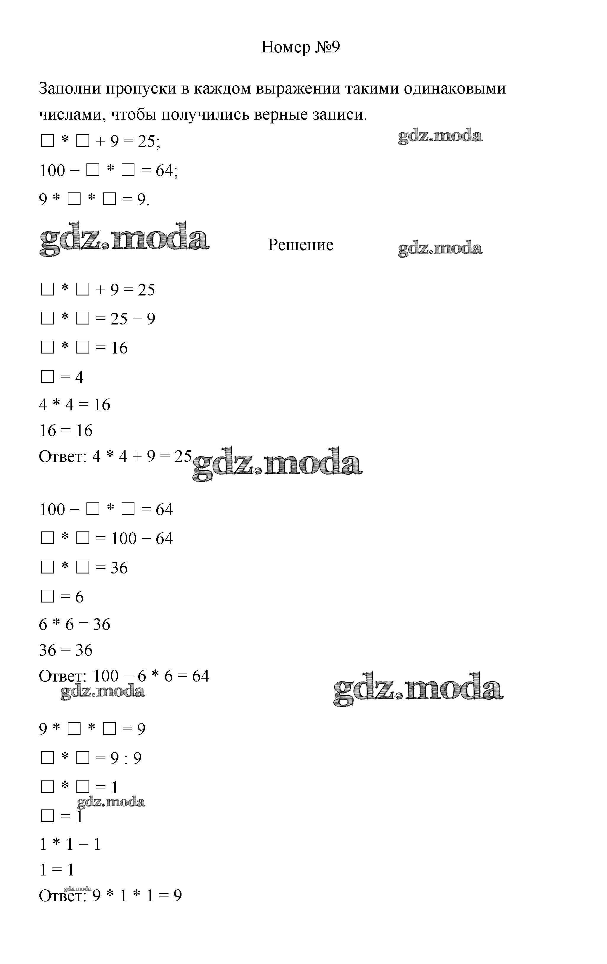 ГДЗ решение к заданию № 9 Математика 3 класс Дорофеев Г.В. Просвещение 2015 Часть 1, Часть 2 ФГОС бесплатно на гдз.мода!
