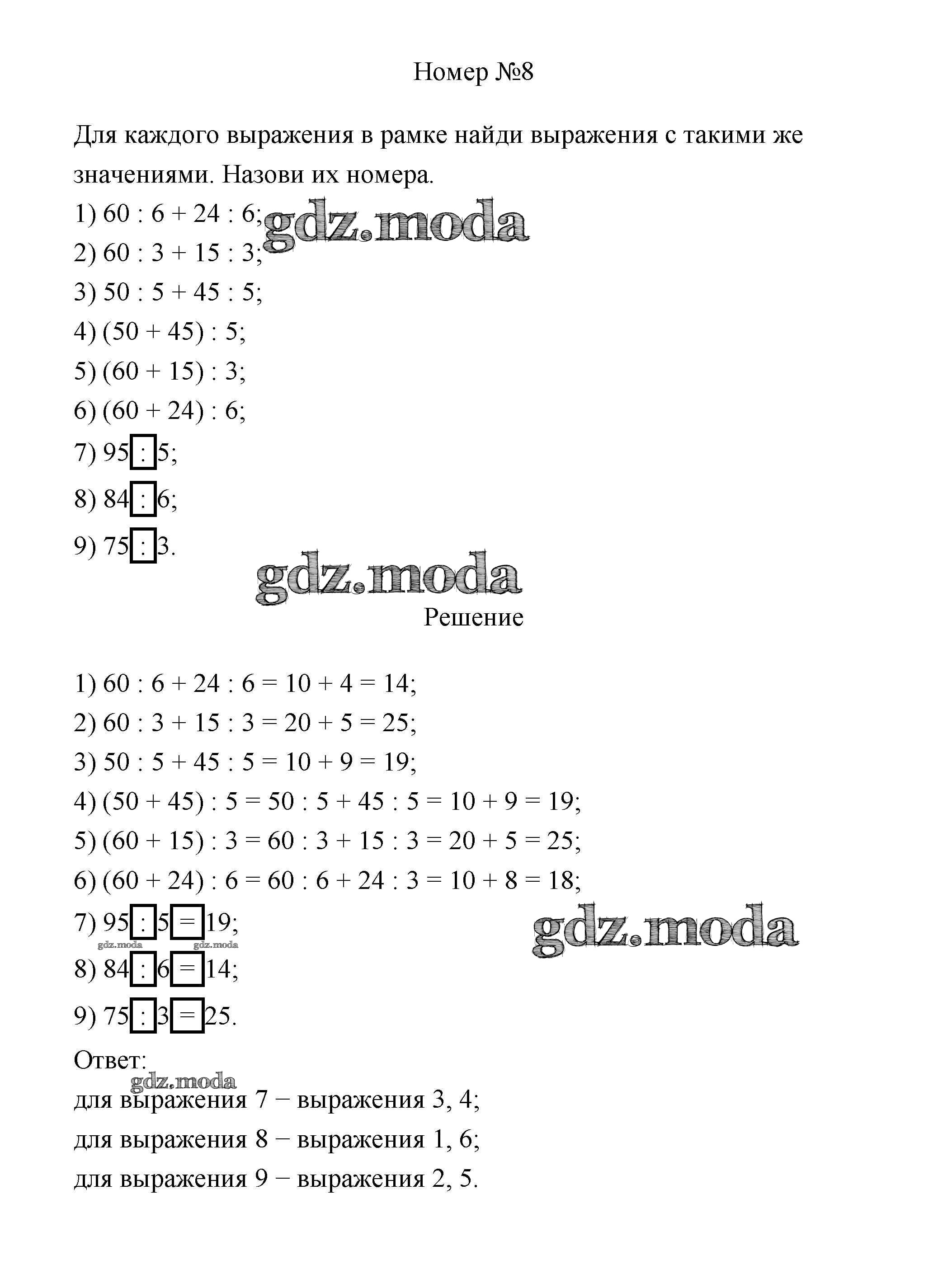 ГДЗ решение к заданию № 8 Математика 3 класс Дорофеев Г.В. Просвещение 2015 Часть 1, Часть 2 ФГОС бесплатно на гдз.мода!