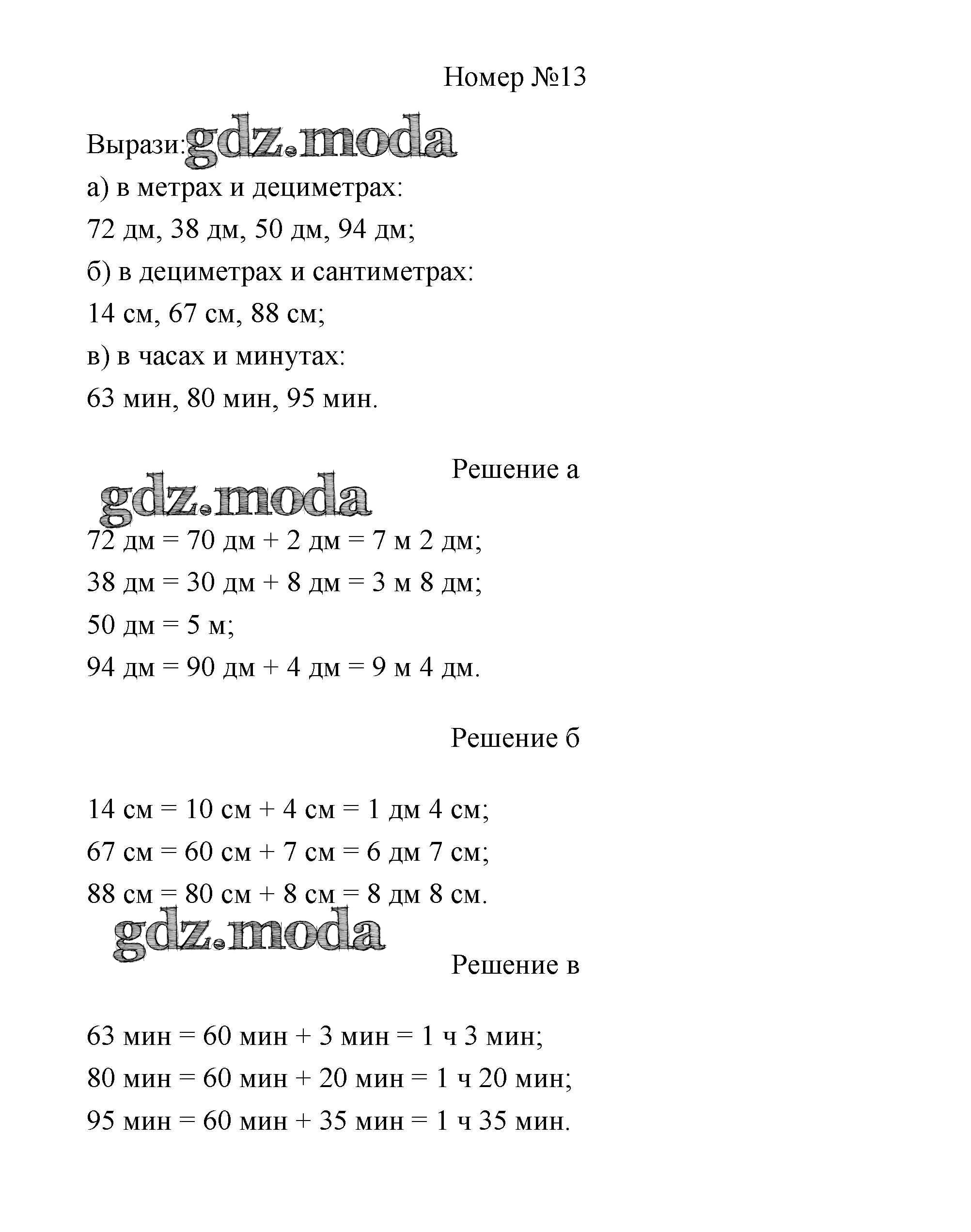 ГДЗ решение к заданию № 13 Математика 3 класс Дорофеев Г.В. Просвещение 2015 Часть 1, Часть 2 ФГОС бесплатно на гдз.мода!