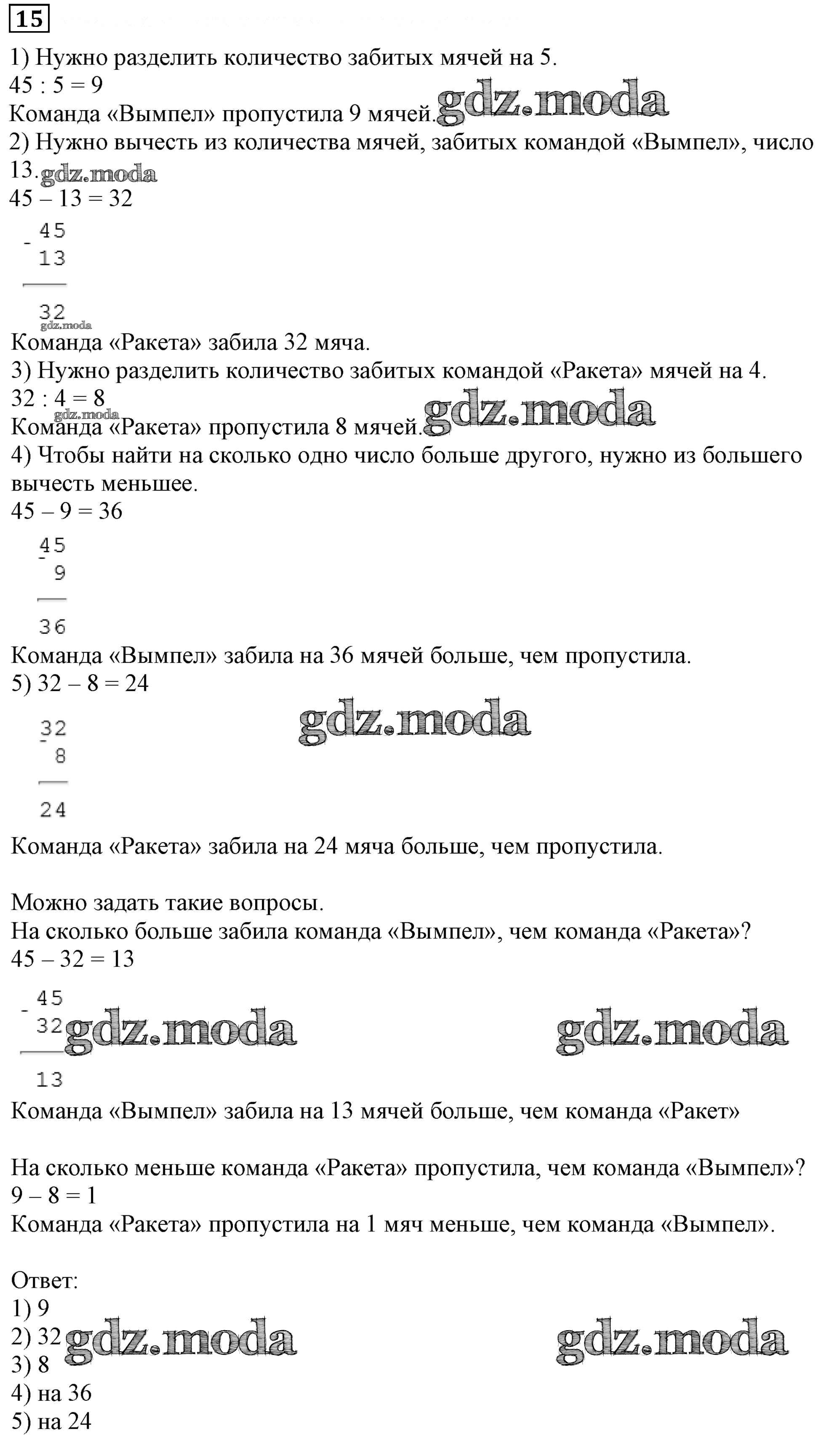 ОТВЕТ на задание № 15 Учебник по Математике 3 класс Дорофеев