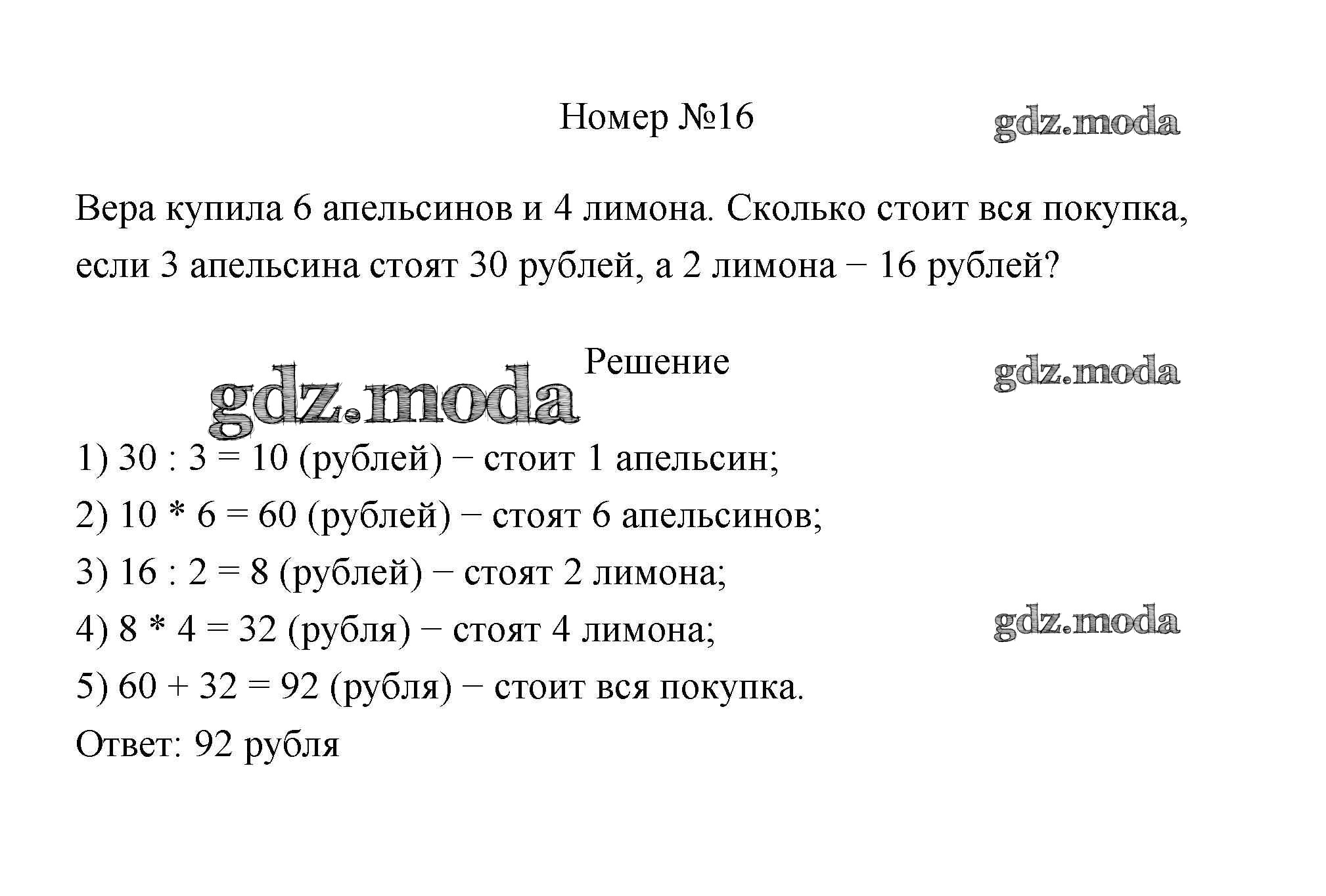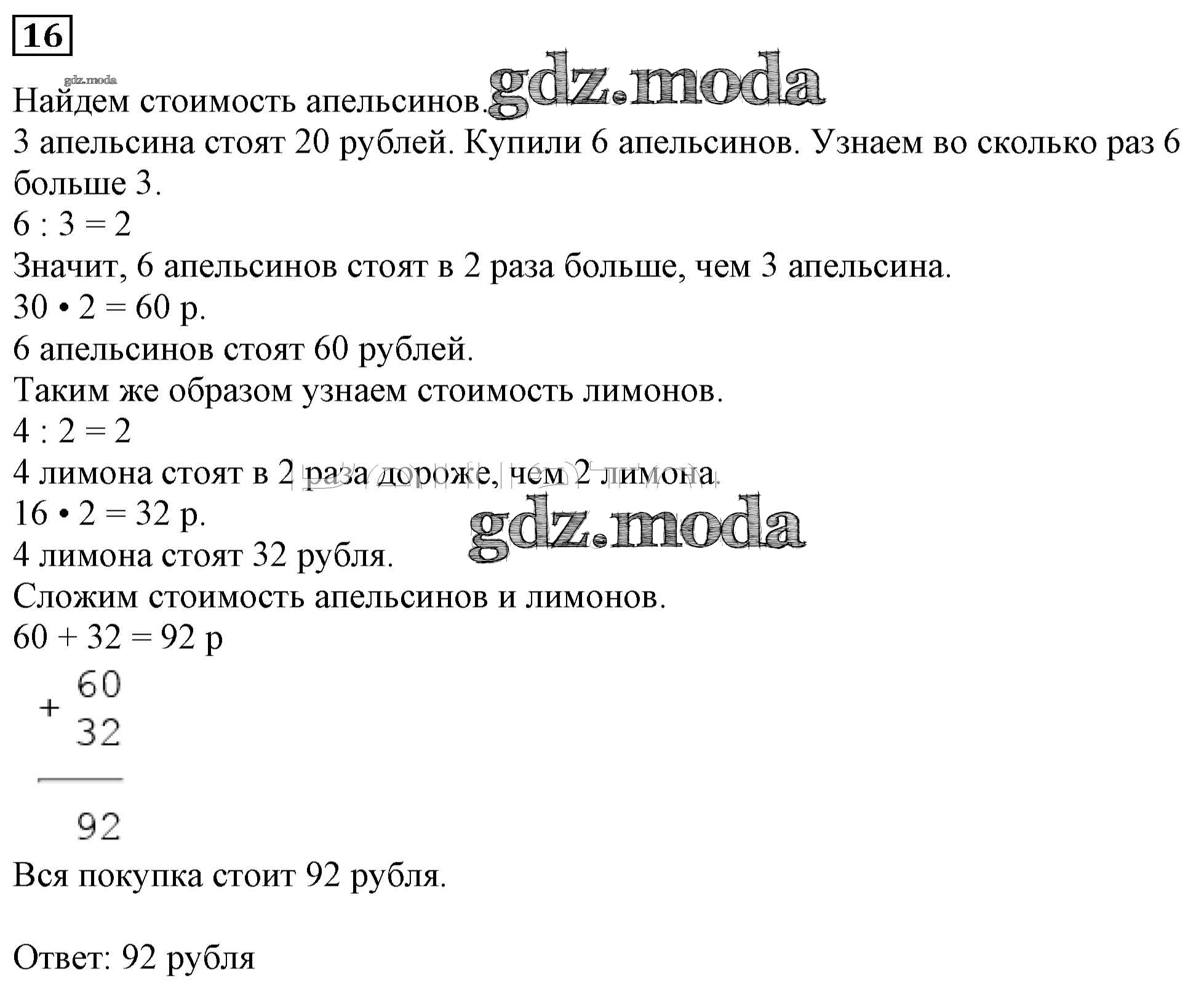 ГДЗ решение к заданию № 16 Математика 3 класс Дорофеев Г.В. Просвещение 2015 Часть 1, Часть 2 ФГОС бесплатно на гдз.мода!