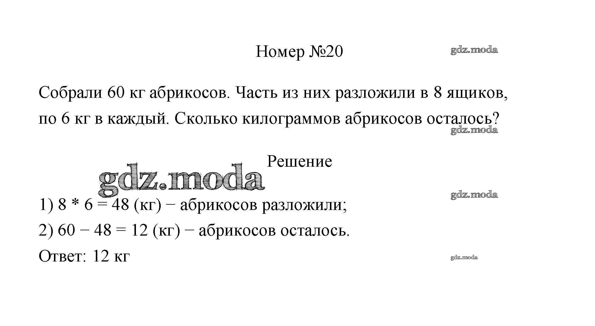 ГДЗ решение к заданию № 20 Математика 3 класс Дорофеев Г.В. Просвещение 2015 Часть 1, Часть 2 ФГОС бесплатно на гдз.мода!