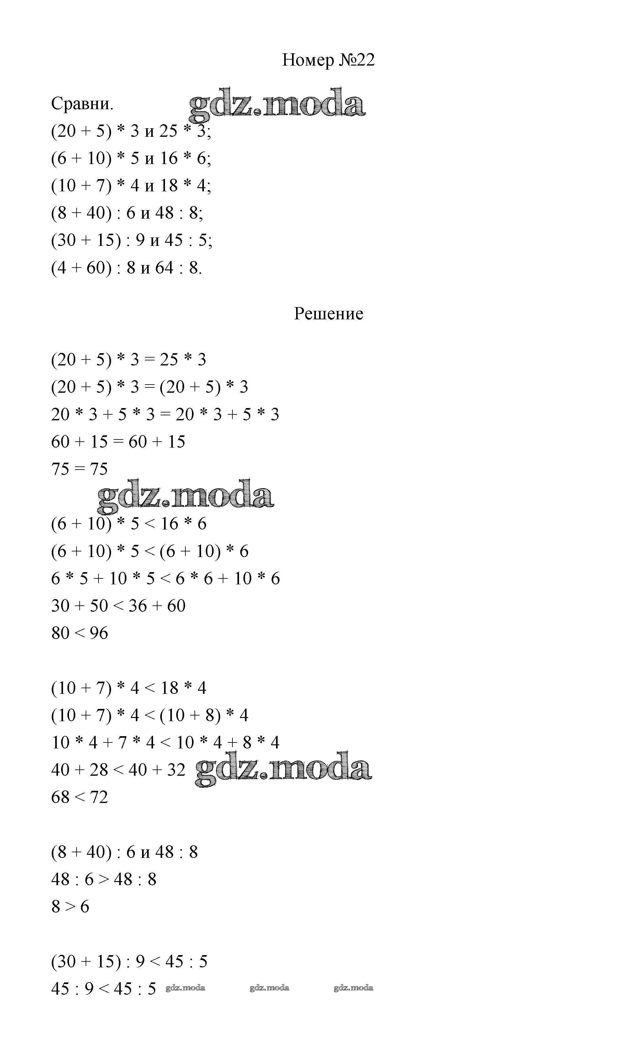 ОТВЕТ на задание № 22 Учебник по Математике 3 класс Дорофеев