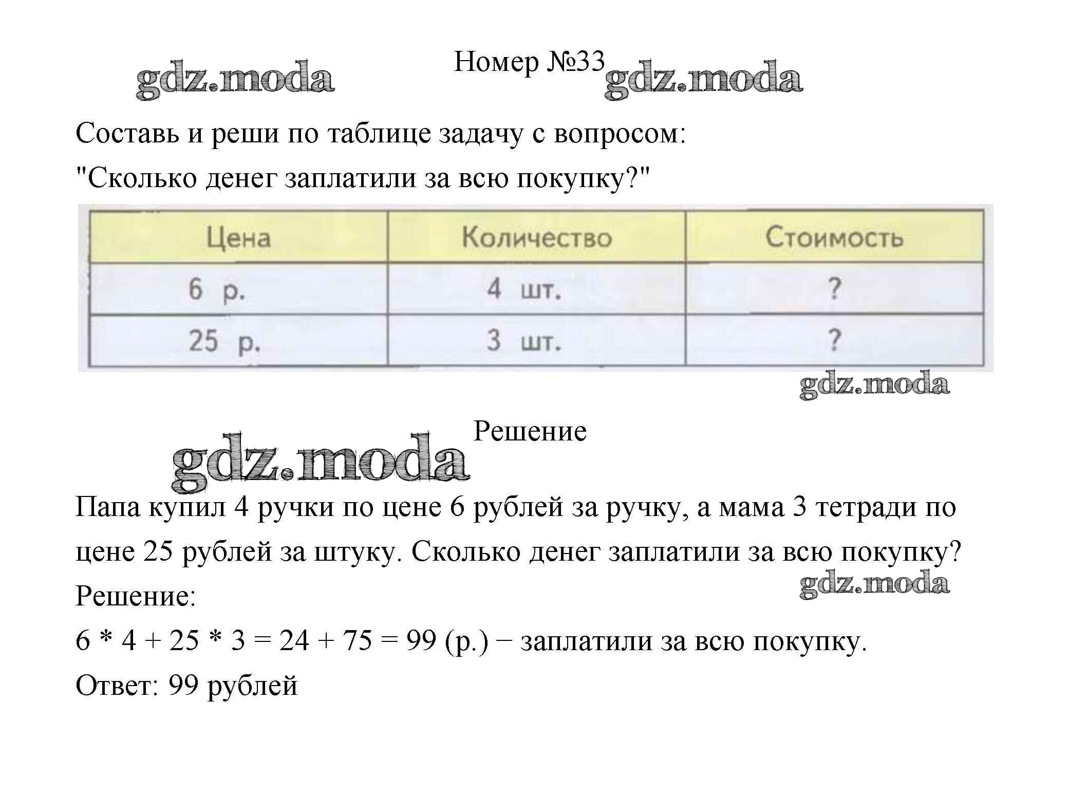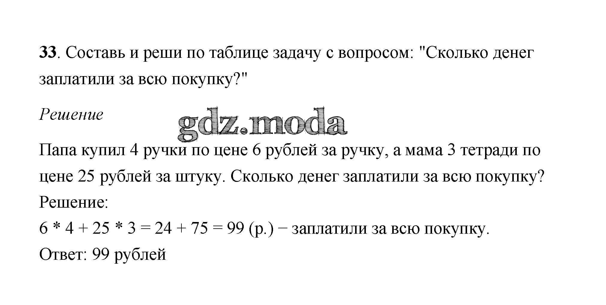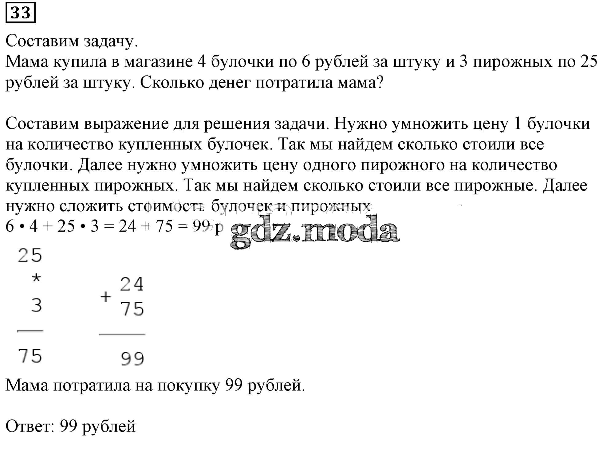 ГДЗ решение к заданию № 33 Математика 3 класс Дорофеев Г.В. Просвещение 2015 Часть 1, Часть 2 ФГОС бесплатно на гдз.мода!