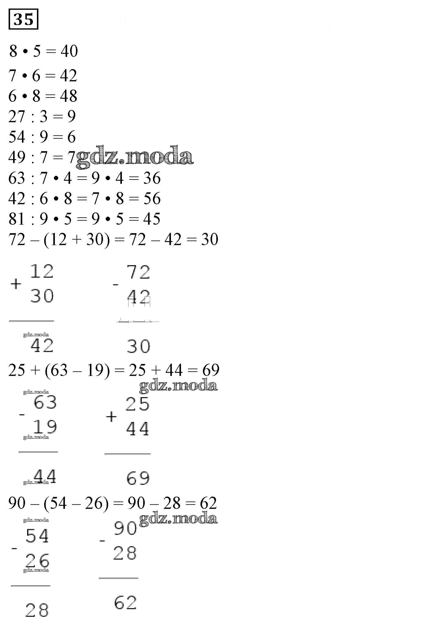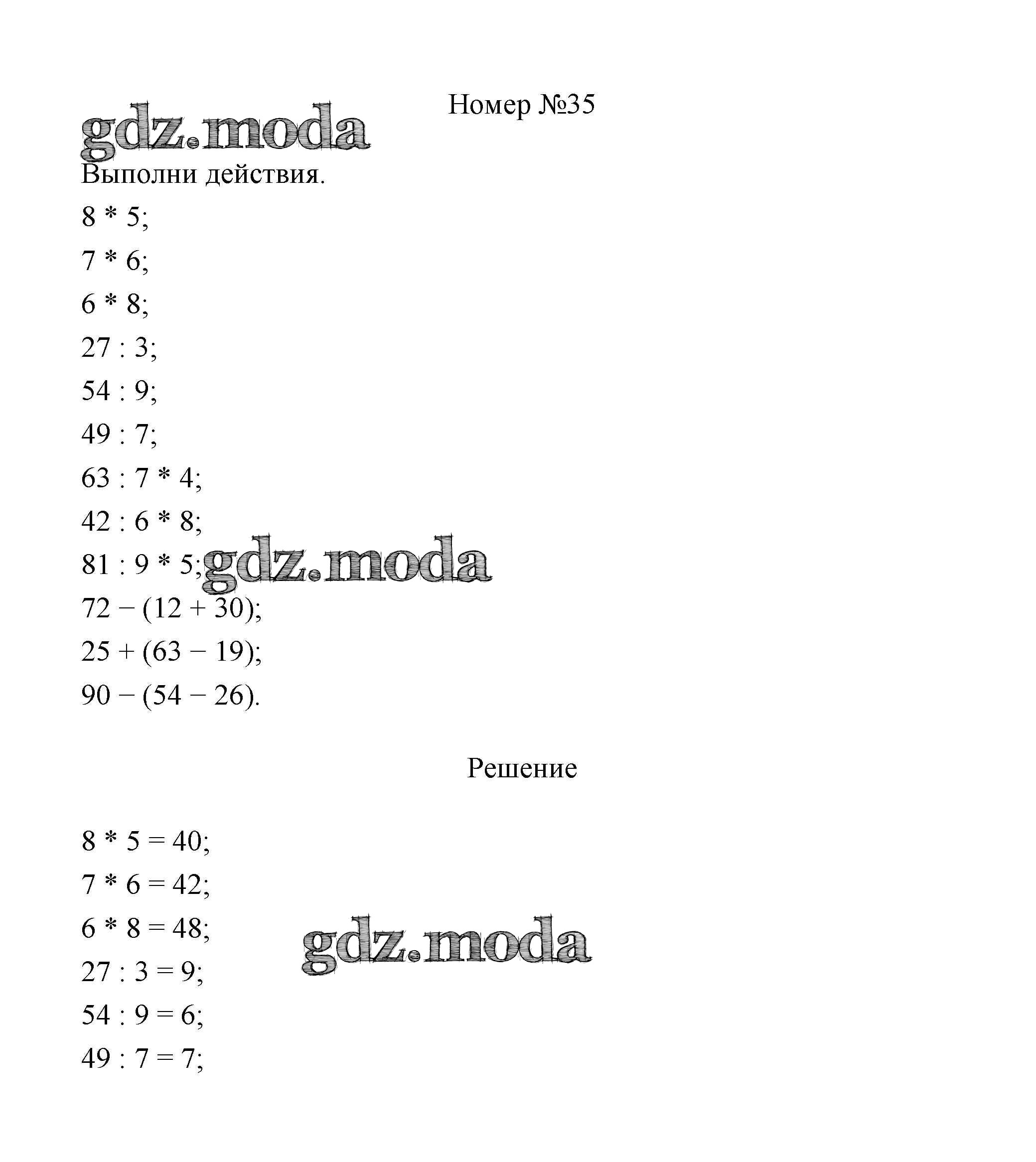 ГДЗ решение к заданию № 35 Математика 3 класс Дорофеев Г.В. Просвещение 2015 Часть 1, Часть 2 ФГОС бесплатно на гдз.мода!
