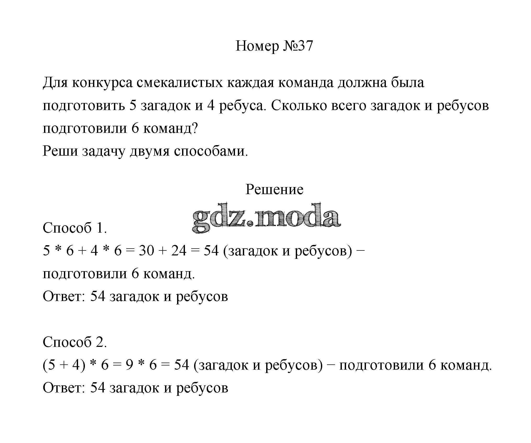 ГДЗ решение к заданию № 37 Математика 3 класс Дорофеев Г.В. Просвещение 2015 Часть 1, Часть 2 ФГОС бесплатно на гдз.мода!