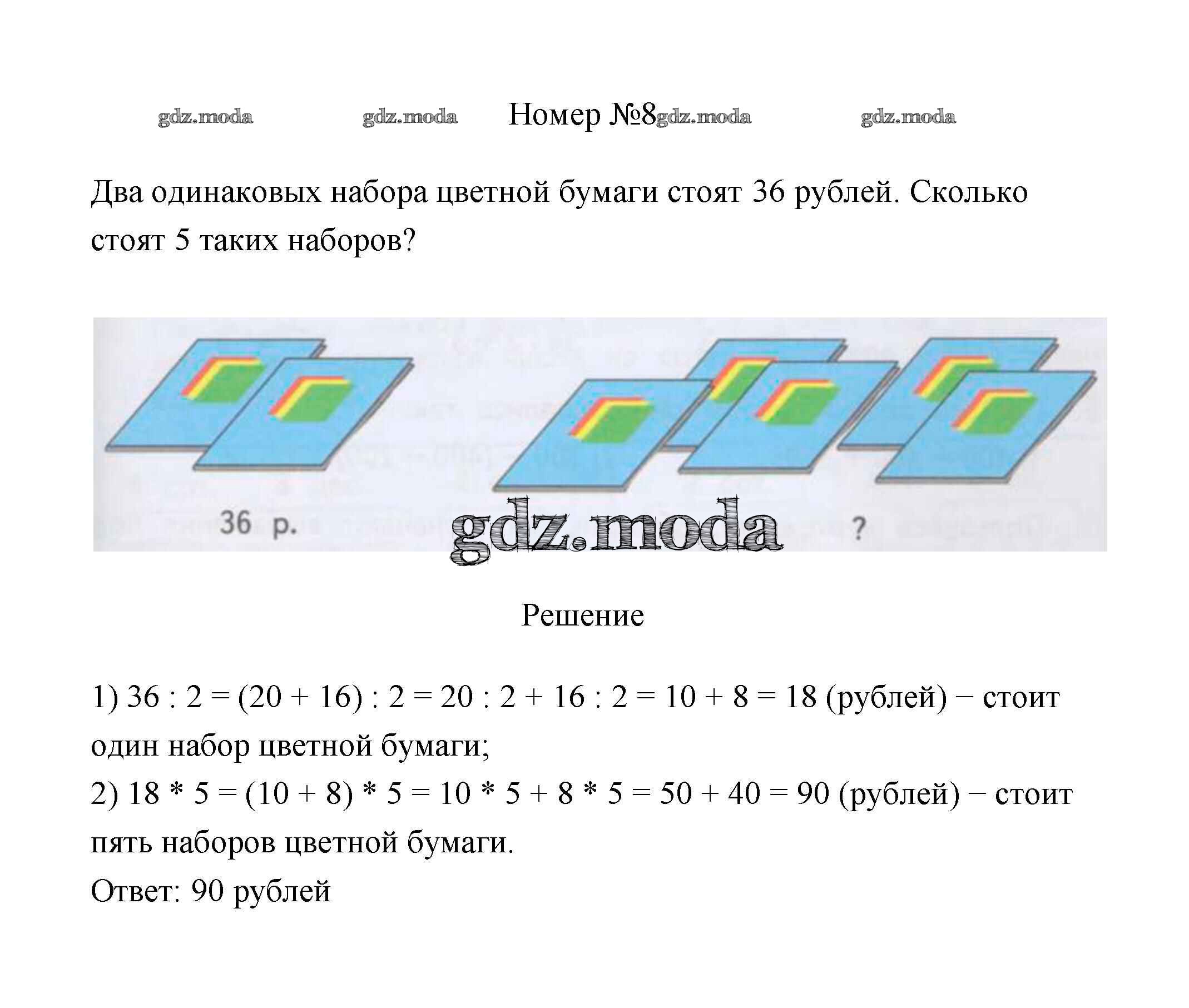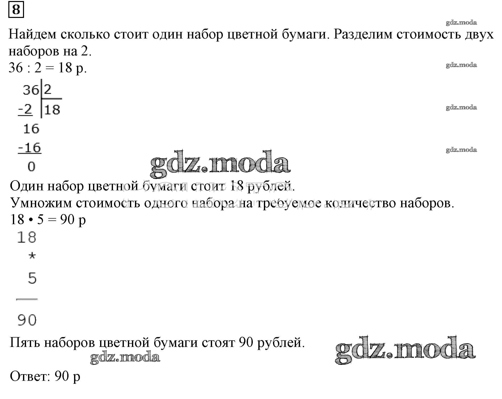 ГДЗ решение к заданию № 8 Математика 3 класс Дорофеев Г.В. Просвещение 2015 Часть 1, Часть 2 ФГОС бесплатно на гдз.мода!