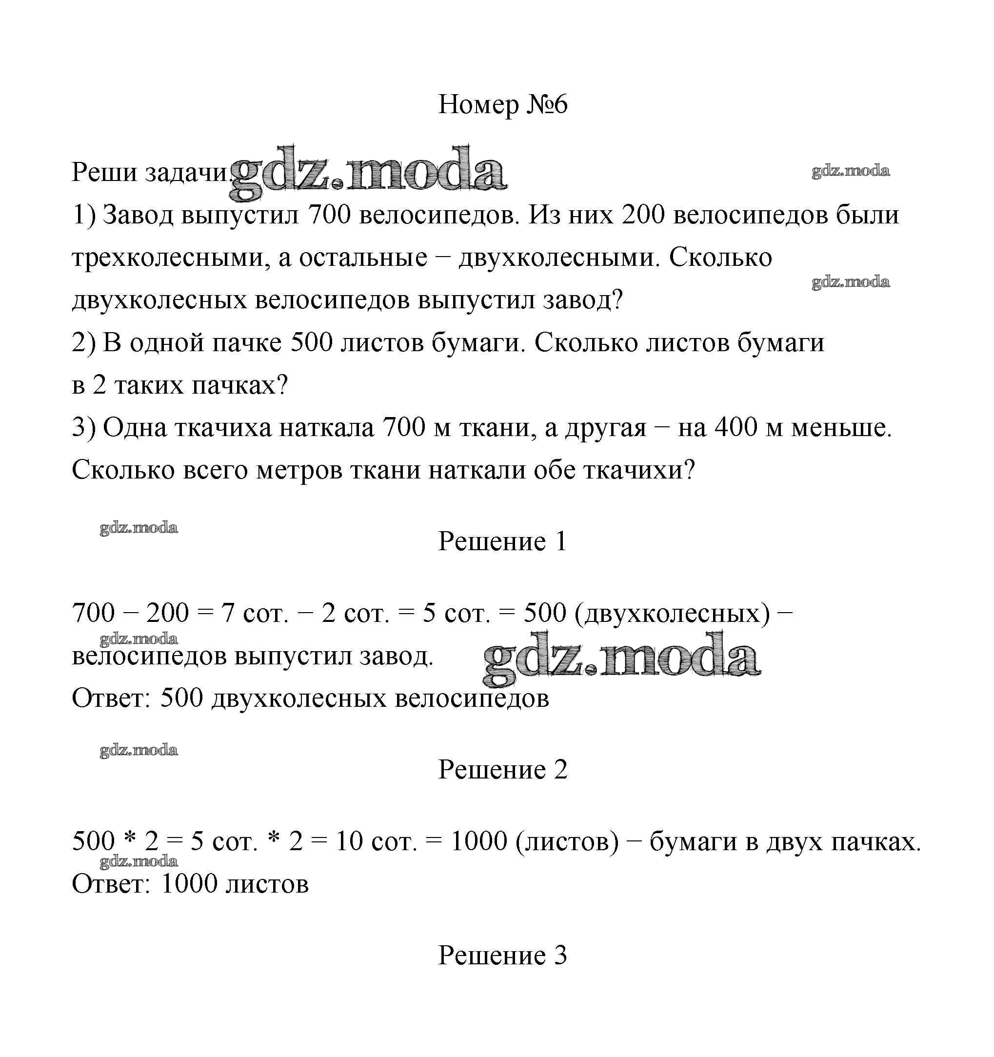 ГДЗ решение к заданию № 6 Математика 3 класс Дорофеев Г.В. Просвещение 2015 Часть 1, Часть 2 ФГОС бесплатно на гдз.мода!