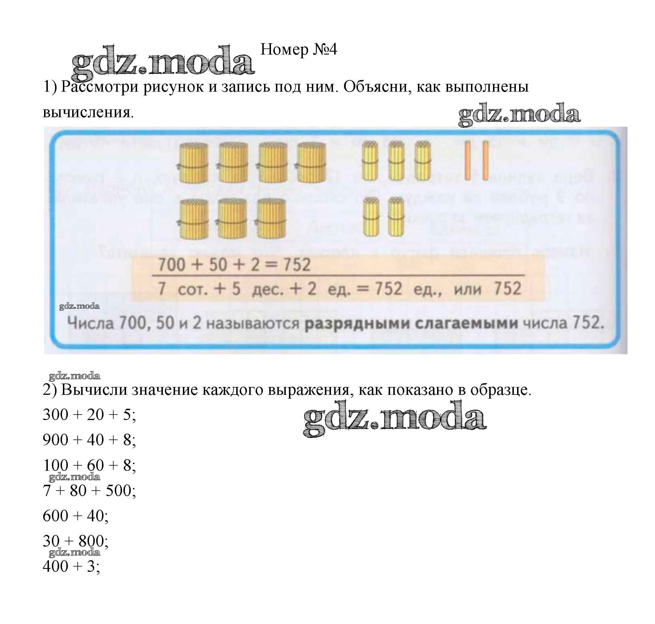 ГДЗ решение к заданию № 4 Математика 3 класс Дорофеев Г.В. Просвещение 2015 Часть 1, Часть 2 ФГОС бесплатно на гдз.мода!