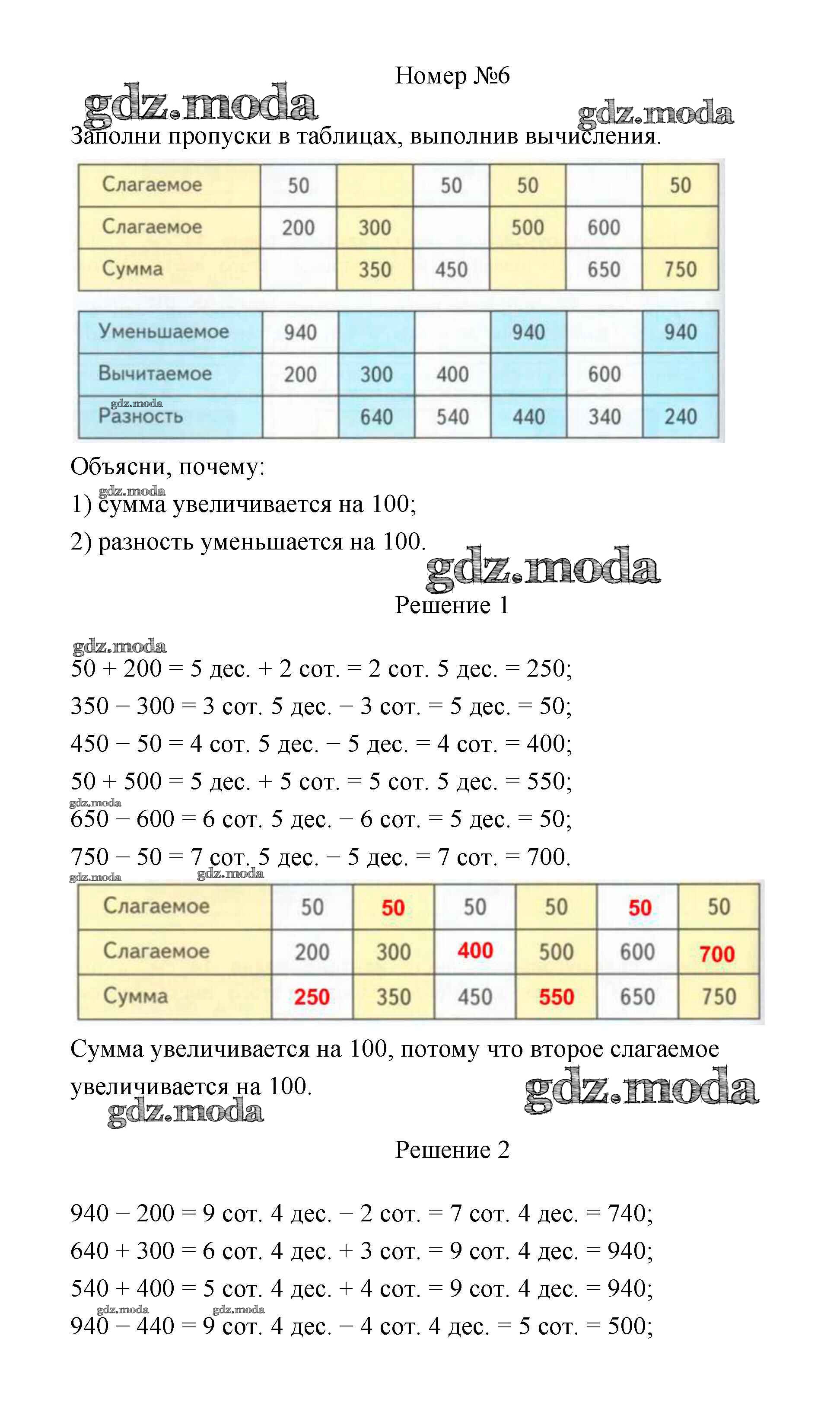 ГДЗ решение к заданию № 6 Математика 3 класс Дорофеев Г.В. Просвещение 2015 Часть 1, Часть 2 ФГОС бесплатно на гдз.мода!