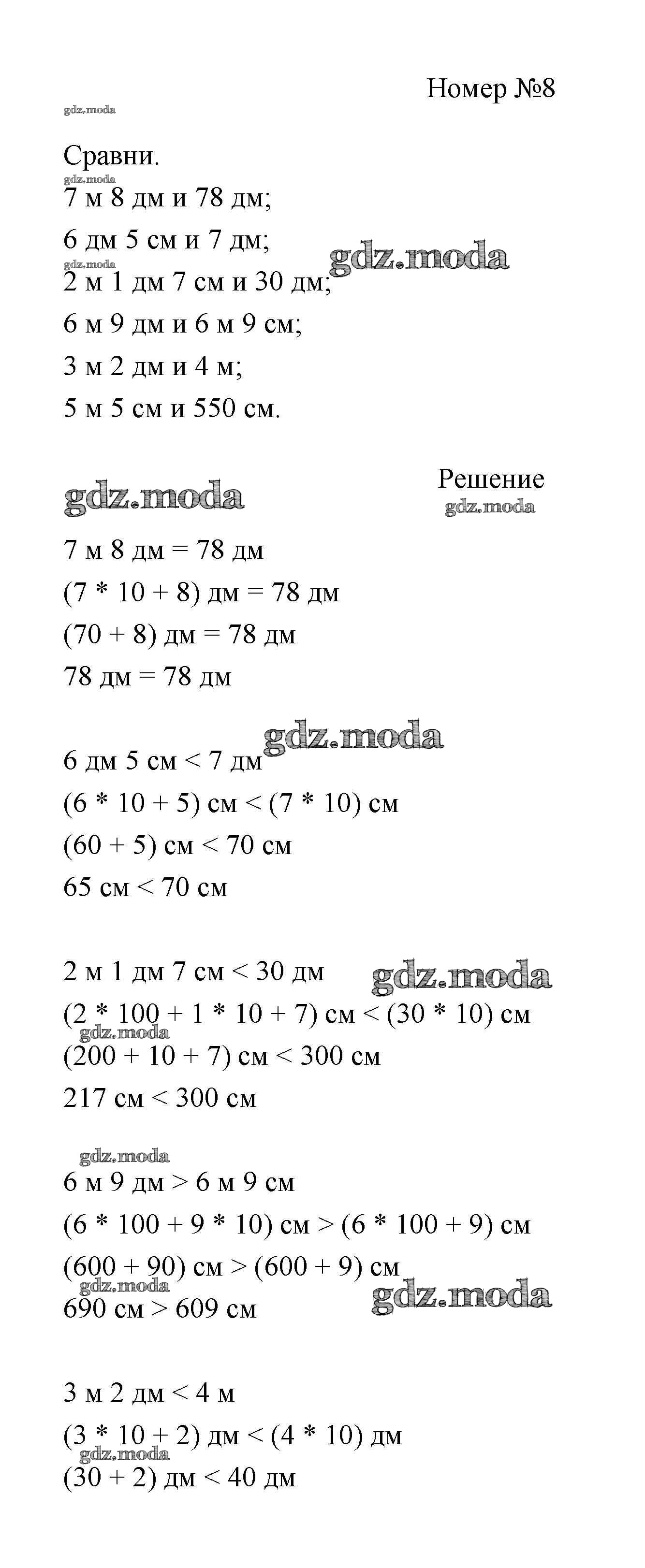 ГДЗ решение к заданию № 8 Математика 3 класс Дорофеев Г.В. Просвещение 2015 Часть 1, Часть 2 ФГОС бесплатно на гдз.мода!