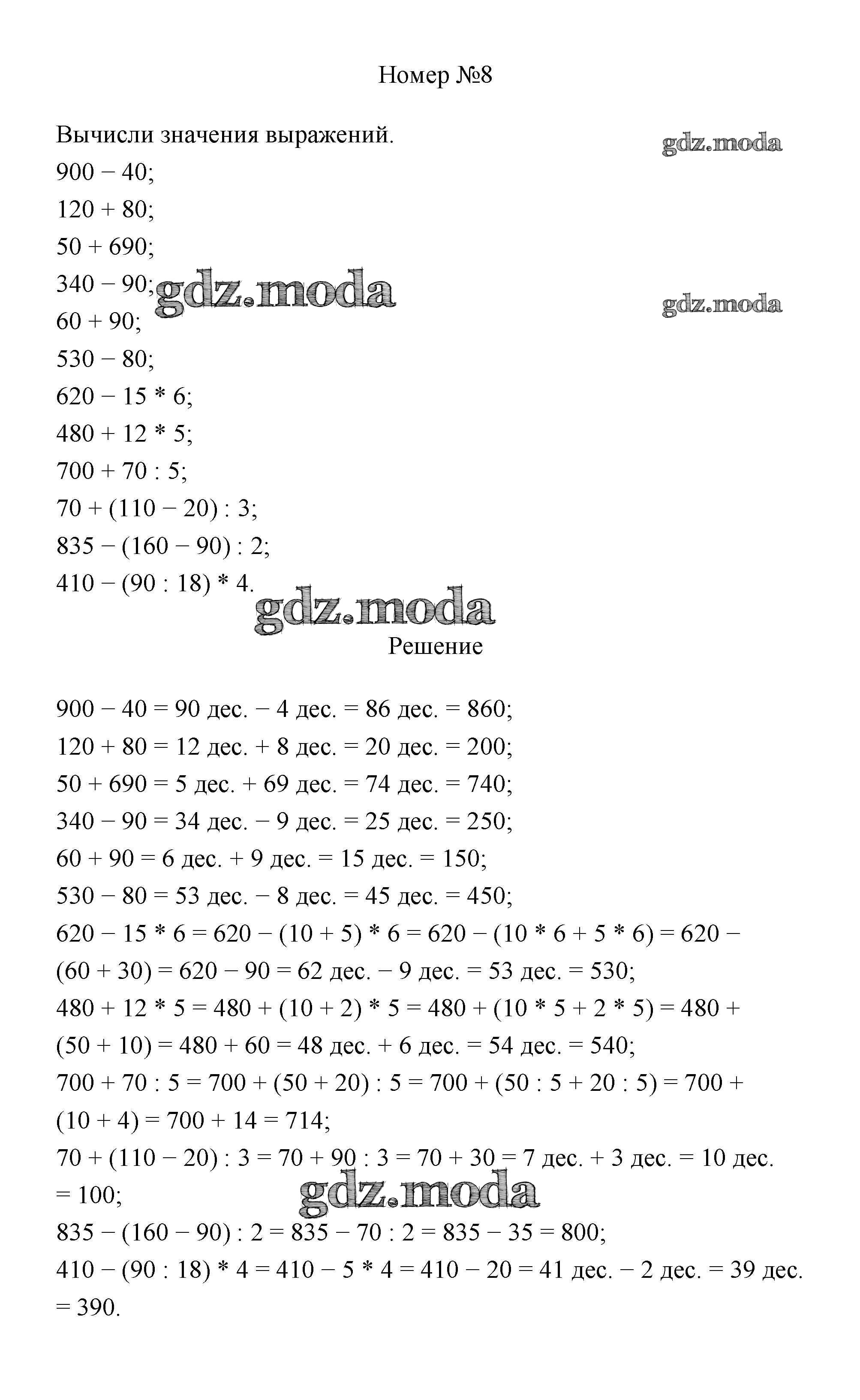 ГДЗ решение к заданию № 8 Математика 3 класс Дорофеев Г.В. Просвещение 2015 Часть 1, Часть 2 ФГОС бесплатно на гдз.мода!