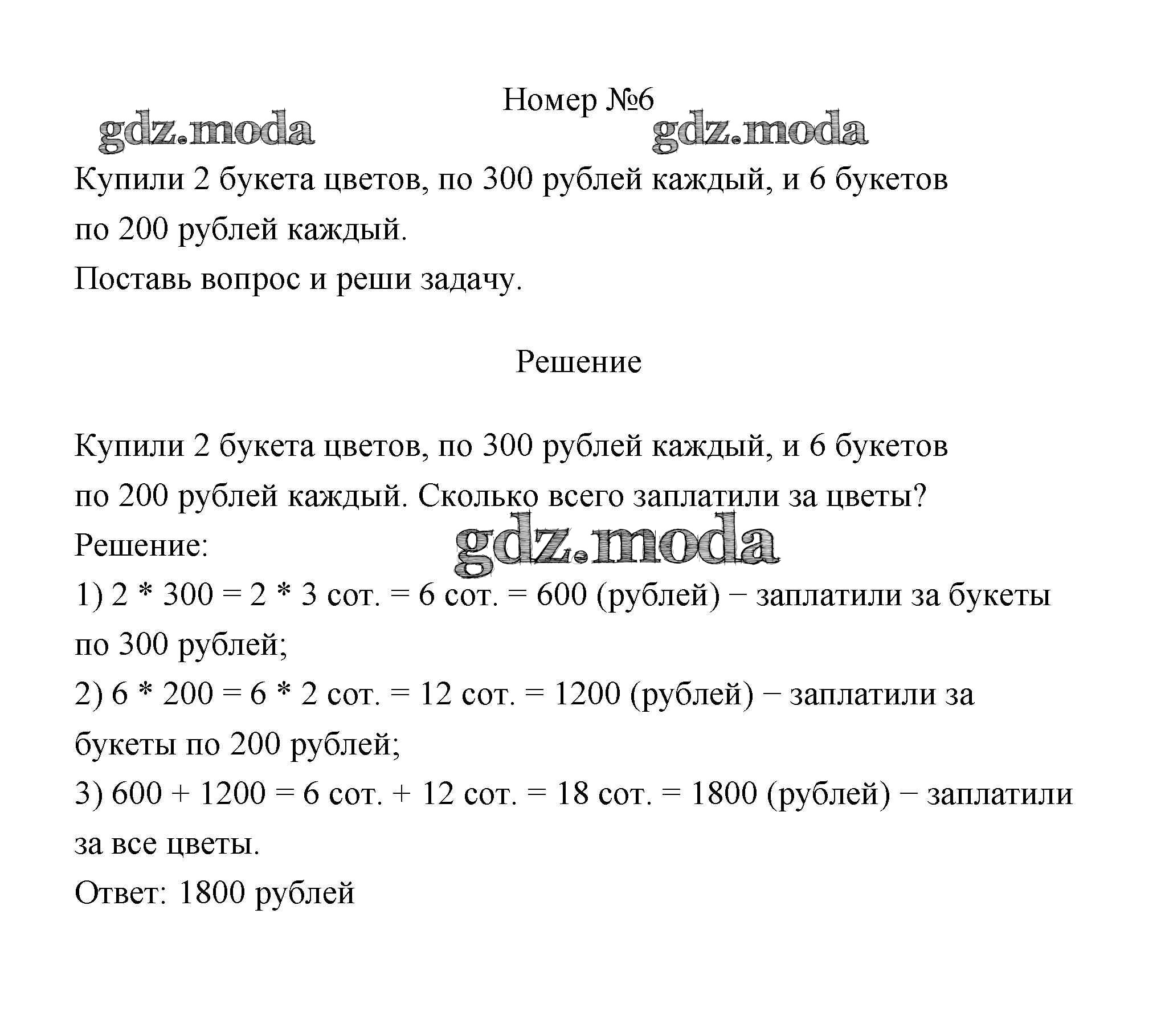 ГДЗ решение к заданию № 6 Математика 3 класс Дорофеев Г.В. Просвещение 2015 Часть 1, Часть 2 ФГОС бесплатно на гдз.мода!