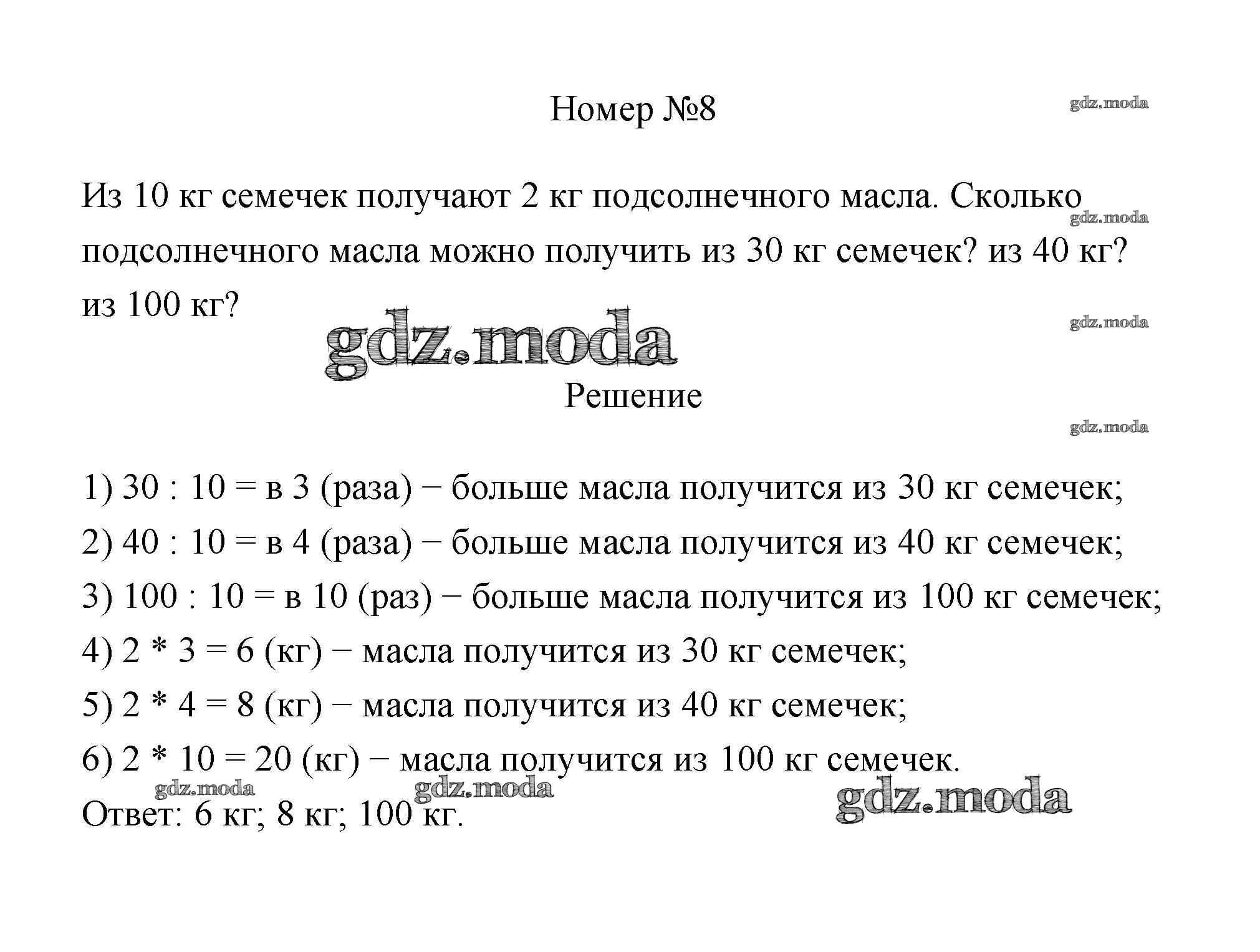 ОТВЕТ на задание № 8 Учебник по Математике 3 класс Дорофеев