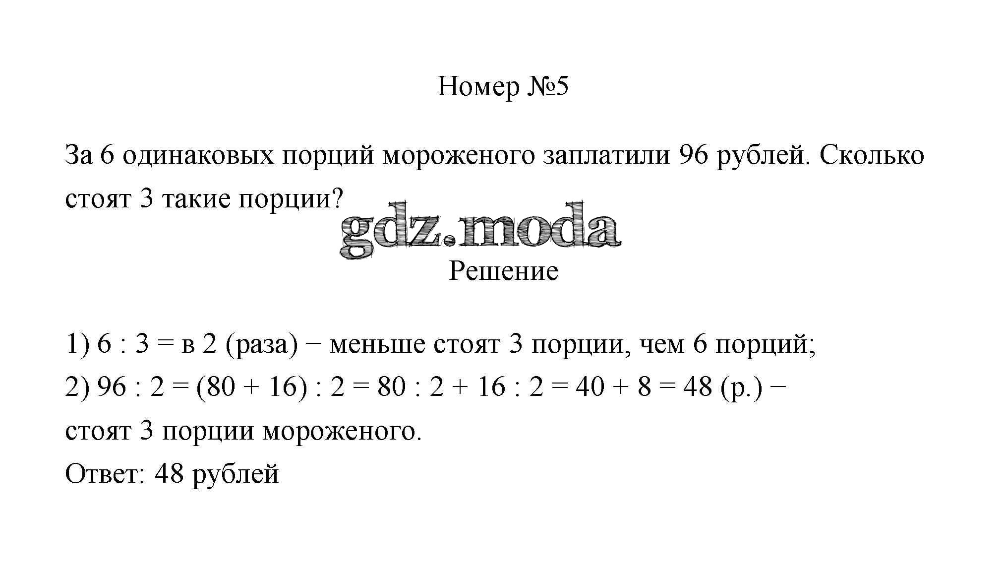 ГДЗ решение к заданию № 5 Математика 3 класс Дорофеев Г.В. Просвещение 2015 Часть 1, Часть 2 ФГОС бесплатно на гдз.мода!