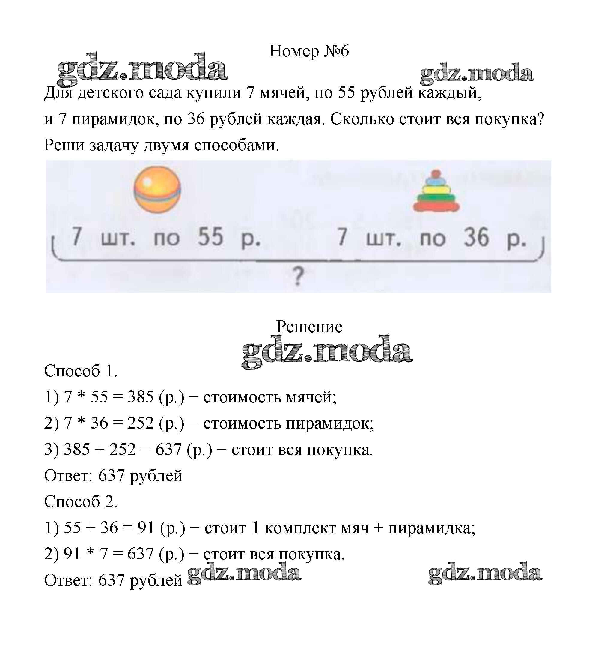 ГДЗ решение к заданию № 6 Математика 3 класс Дорофеев Г.В. Просвещение 2015 Часть 1, Часть 2 ФГОС бесплатно на гдз.мода!
