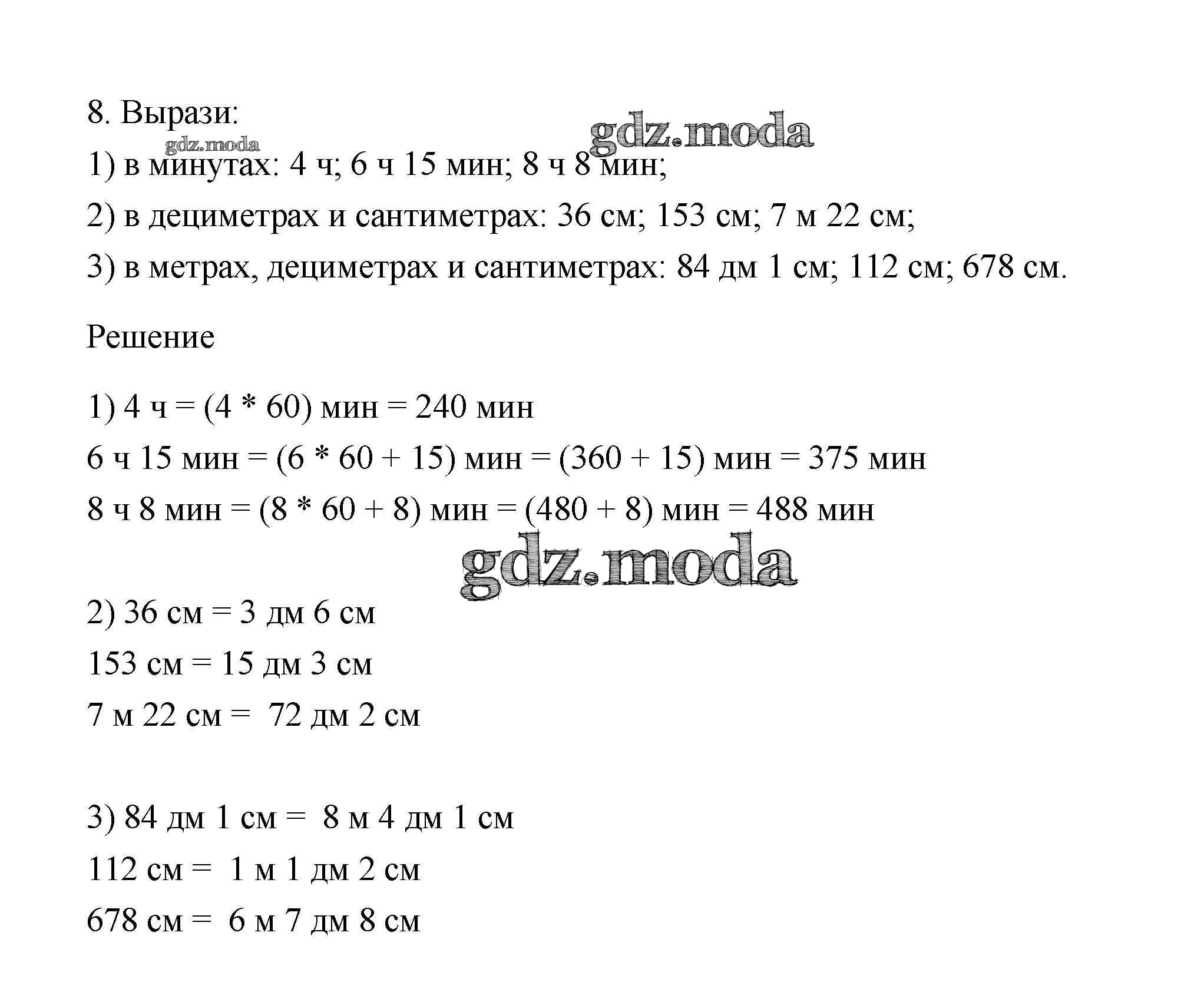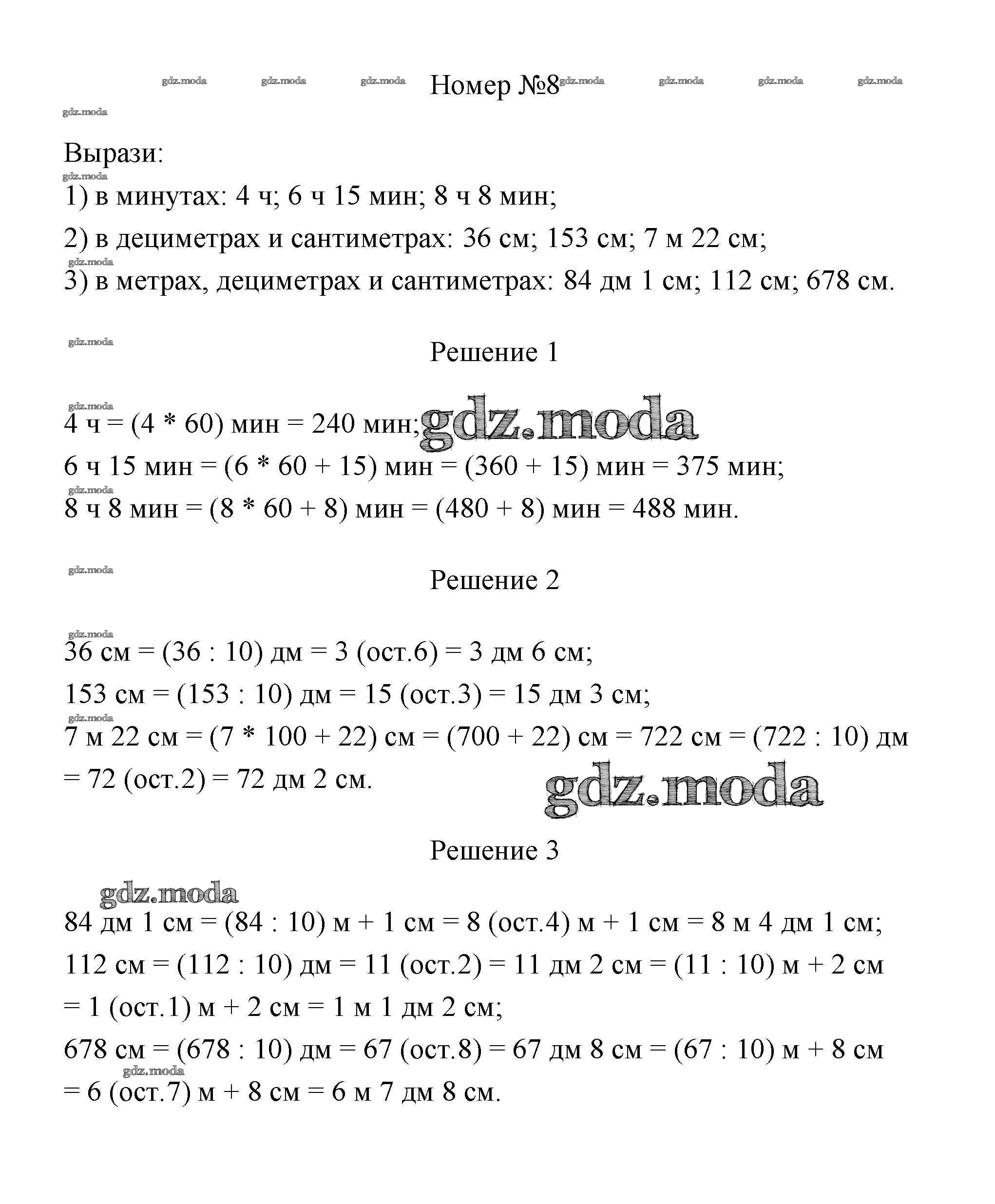 ГДЗ решение к заданию № 8 Математика 3 класс Дорофеев Г.В. Просвещение 2015 Часть 1, Часть 2 ФГОС бесплатно на гдз.мода!