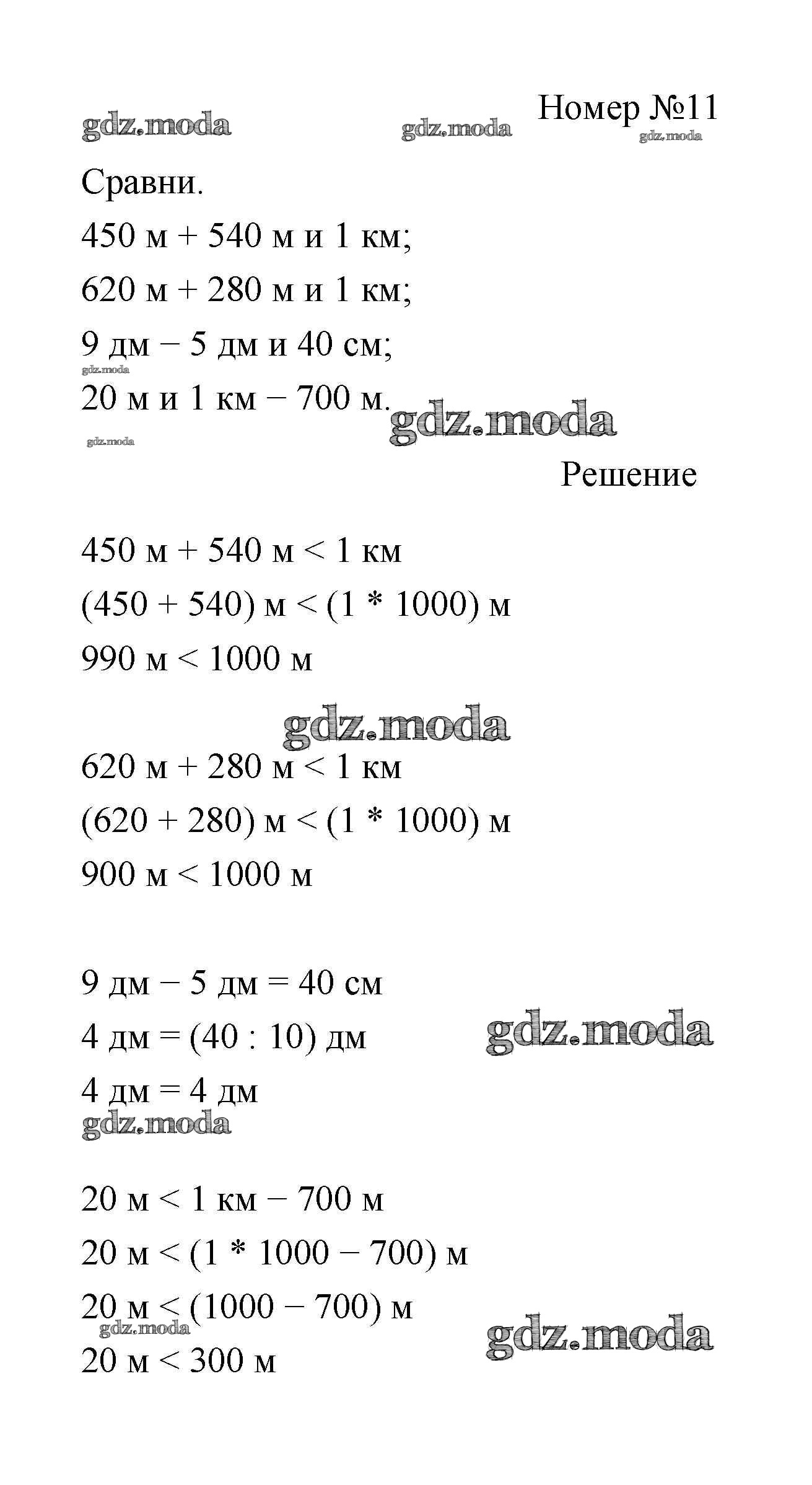 ГДЗ решение к заданию № 11 Математика 3 класс Дорофеев Г.В. Просвещение 2015 Часть 1, Часть 2 ФГОС бесплатно на гдз.мода!