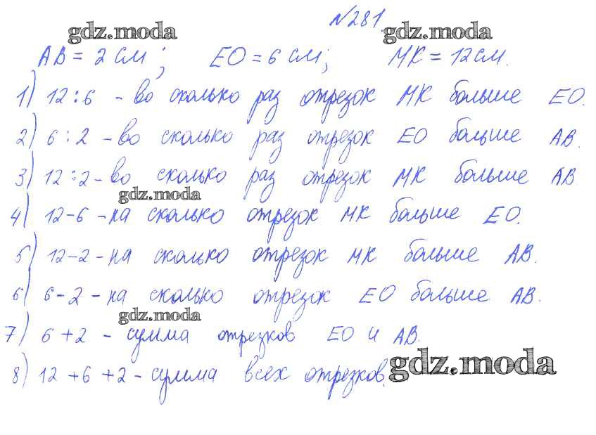 ГДЗ решение к заданию № 281 Математика 3 класс Истомина Н.Б. Ассоциация 21 век 2014 Часть 1, Часть 2 ФГОС бесплатно на гдз.мода!