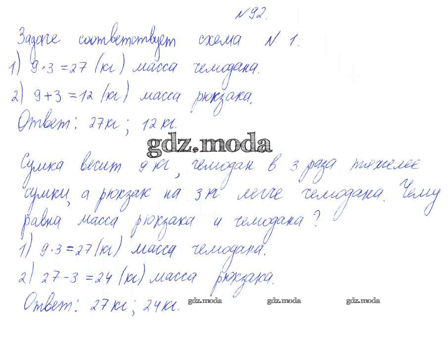 ГДЗ решение к заданию № 92 Математика 3 класс Истомина Н.Б. Ассоциация 21 век 2014 Часть 1, Часть 2 ФГОС бесплатно на гдз.мода!