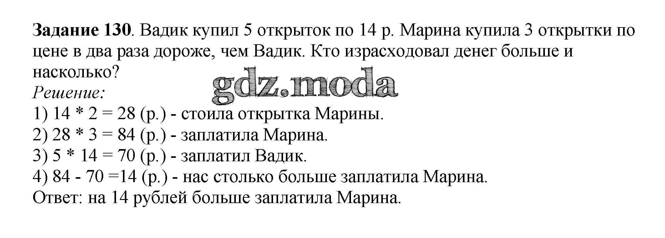 ОТВЕТ на задание № 130 Учебник по Математике 3 класс Истомина Гармония