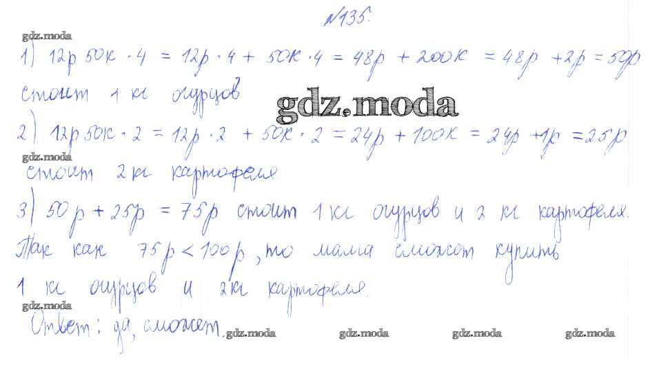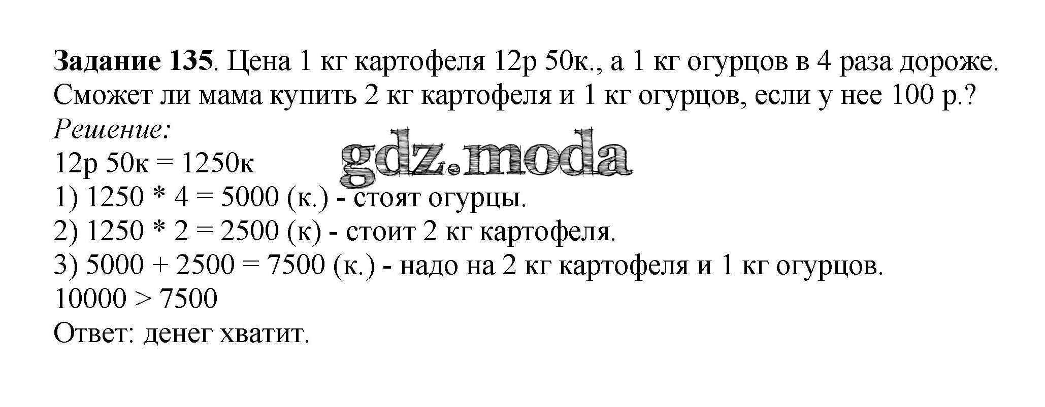 ОТВЕТ на задание № 135 Учебник по Математике 3 класс Истомина Гармония