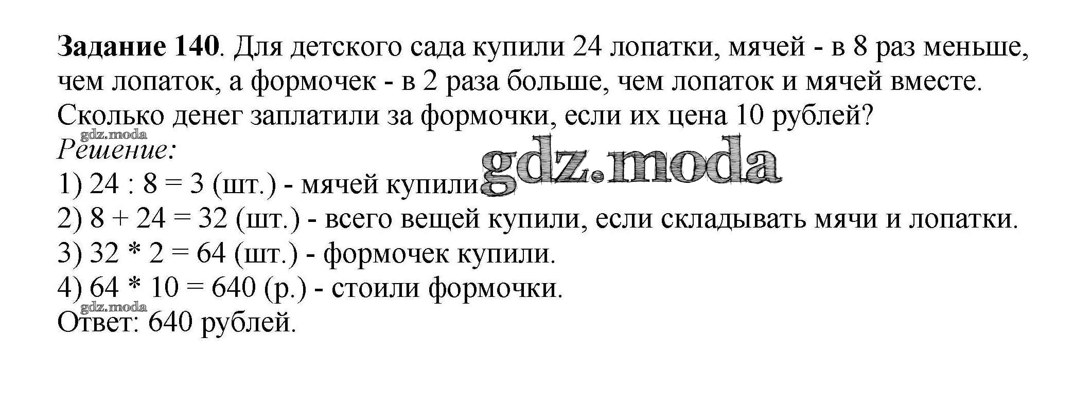 ГДЗ решение к заданию № 140 Математика 3 класс Истомина Н.Б. Ассоциация 21 век 2014 Часть 1, Часть 2 ФГОС бесплатно на гдз.мода!