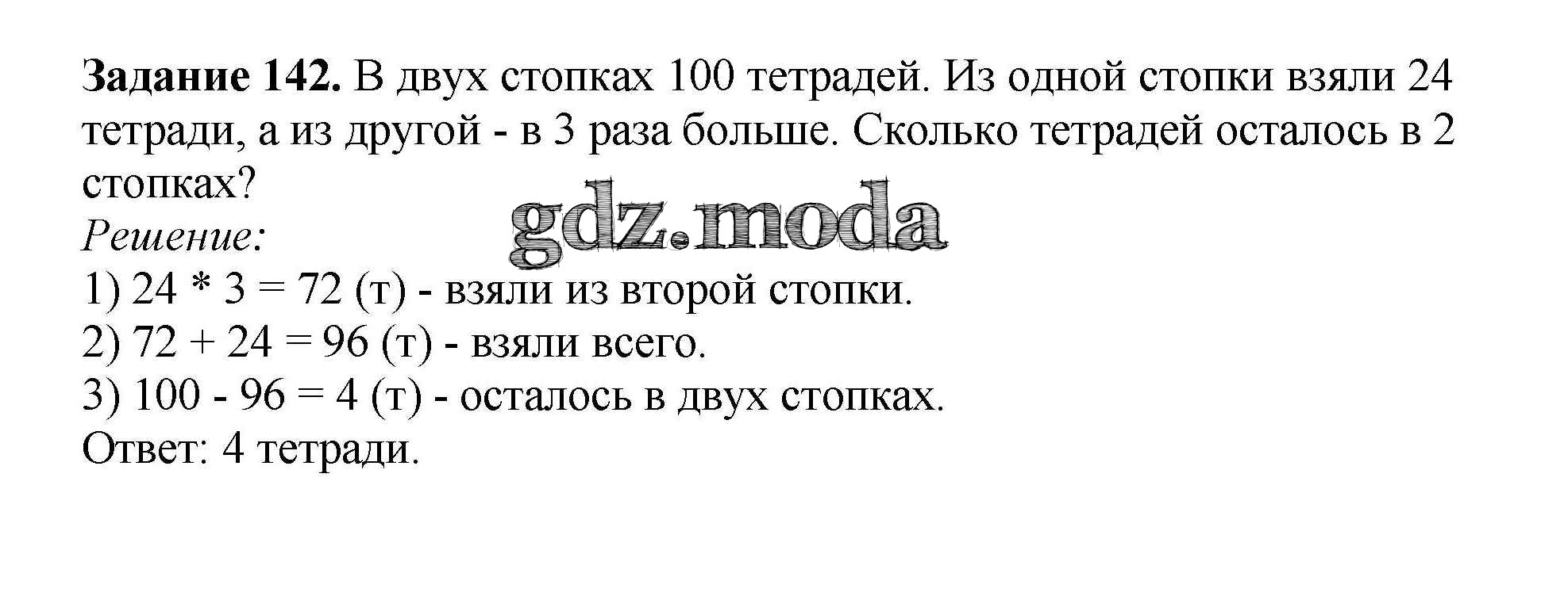 ГДЗ решение к заданию № 142 Математика 3 класс Истомина Н.Б. Ассоциация 21 век 2014 Часть 1, Часть 2 ФГОС бесплатно на гдз.мода!