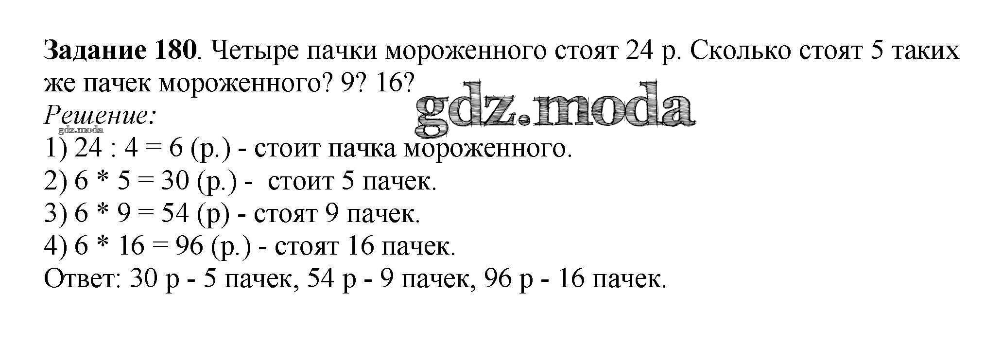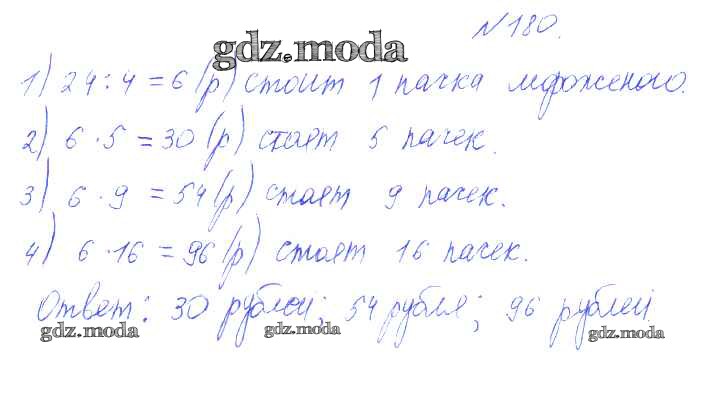 ГДЗ решение к заданию № 180 Математика 3 класс Истомина Н.Б. Ассоциация 21 век 2014 Часть 1, Часть 2 ФГОС бесплатно на гдз.мода!