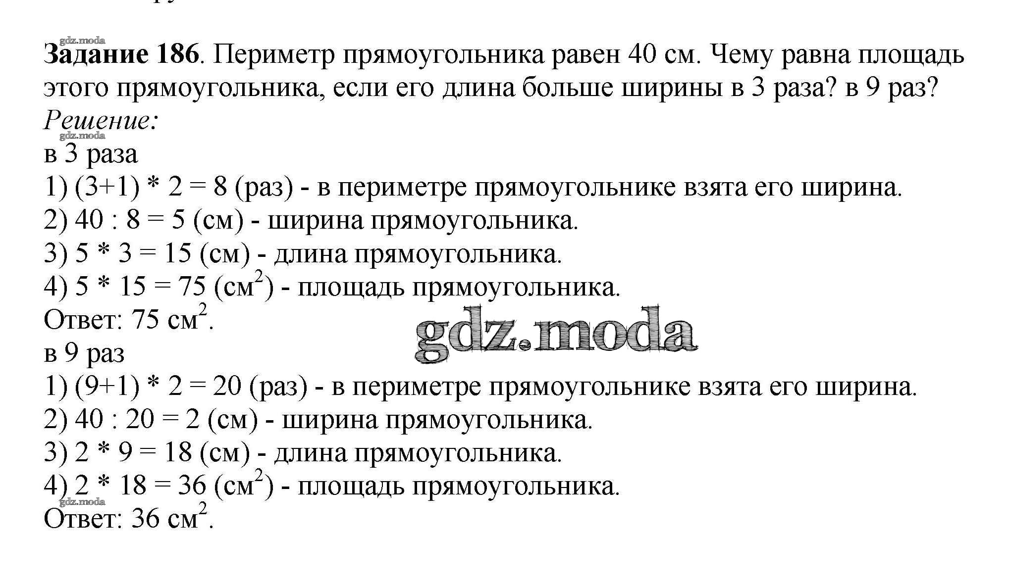 ГДЗ решение к заданию № 186 Математика 3 класс Истомина Н.Б. Ассоциация 21 век 2014 Часть 1, Часть 2 ФГОС бесплатно на гдз.мода!