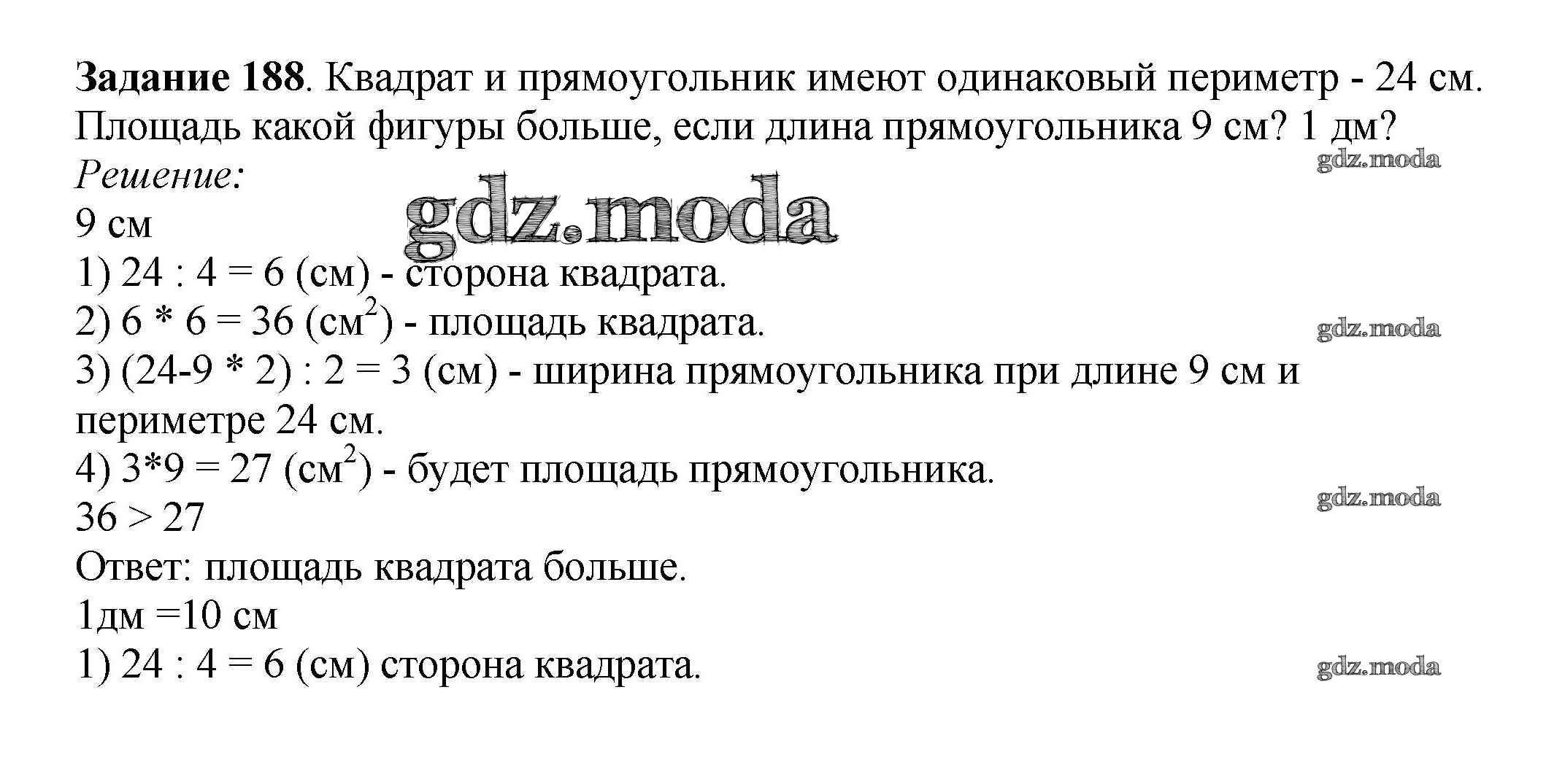 ГДЗ решение к заданию № 188 Математика 3 класс Истомина Н.Б. Ассоциация 21 век 2014 Часть 1, Часть 2 ФГОС бесплатно на гдз.мода!