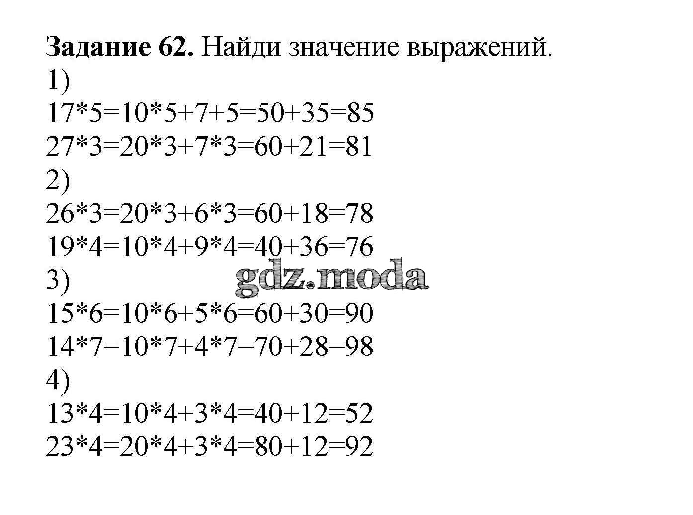 ГДЗ решение к заданию № 62 Математика 3 класс Истомина Н.Б. Ассоциация 21 век 2014 Часть 1, Часть 2 ФГОС бесплатно на гдз.мода!