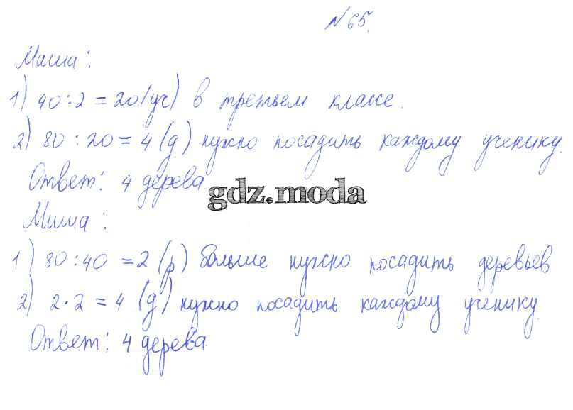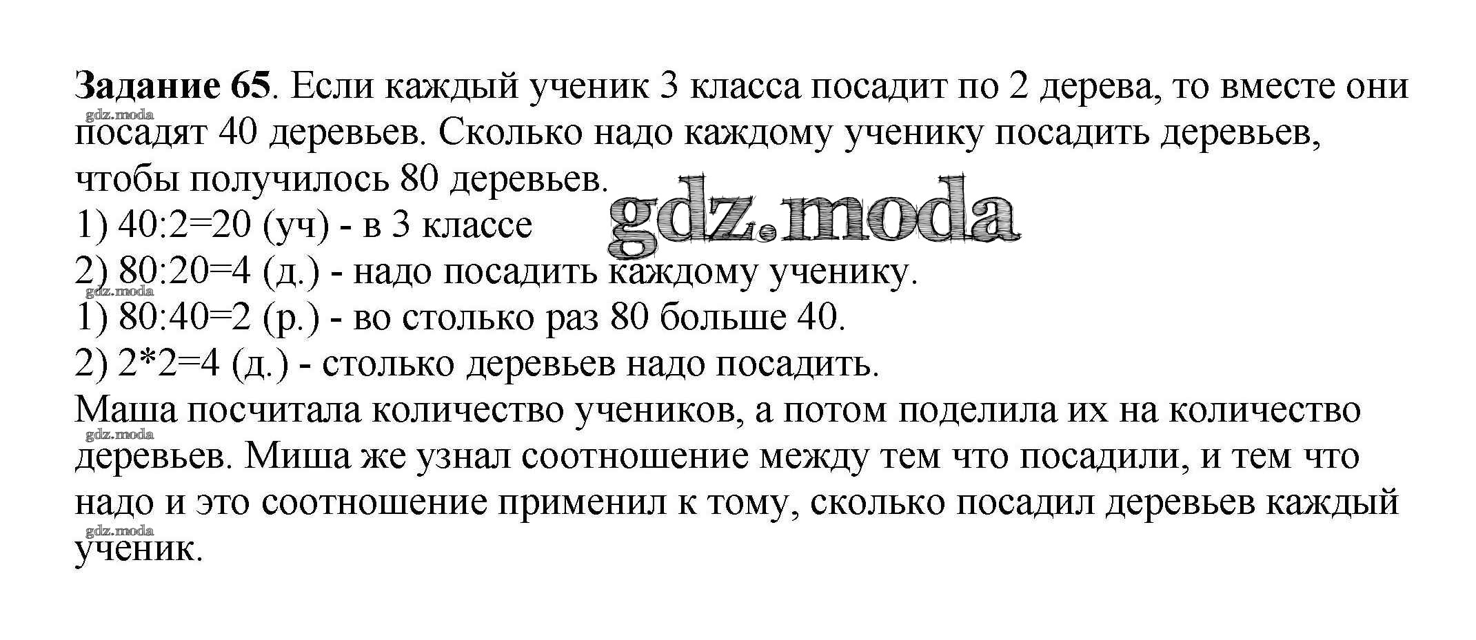ГДЗ решение к заданию № 65 Математика 3 класс Истомина Н.Б. Ассоциация 21 век 2014 Часть 1, Часть 2 ФГОС бесплатно на гдз.мода!